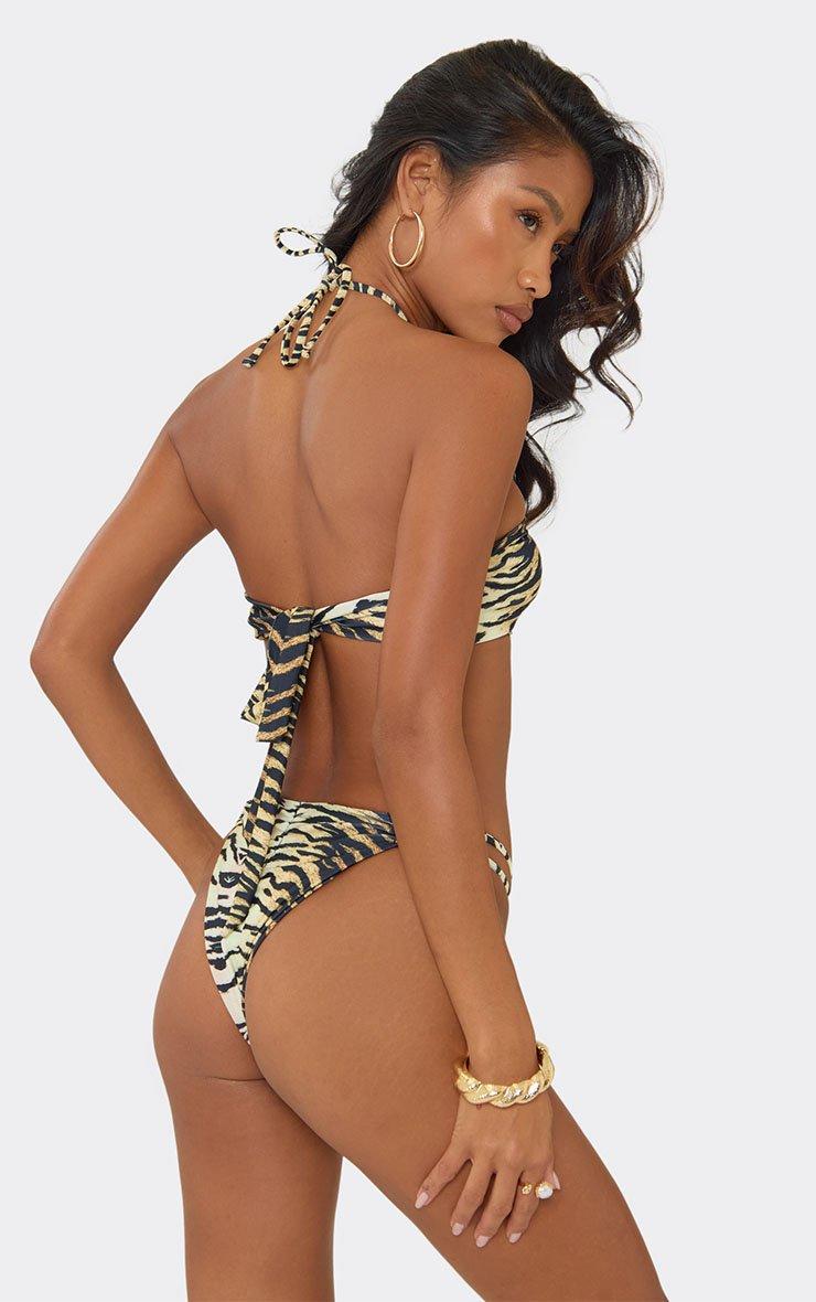 Halter Neck Ring Detail Bikini Set In Multi Tiger Print