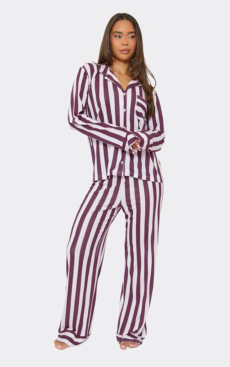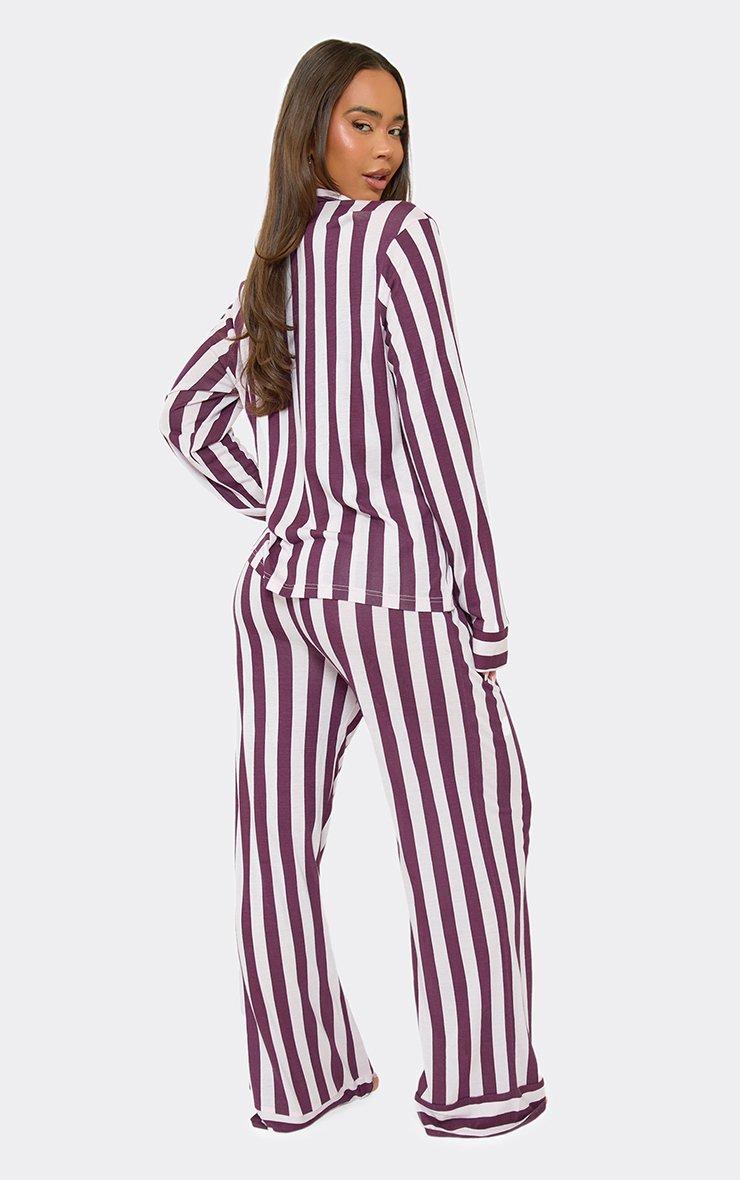 Long Sleeve Pyjama Shirt In Purple Stripe