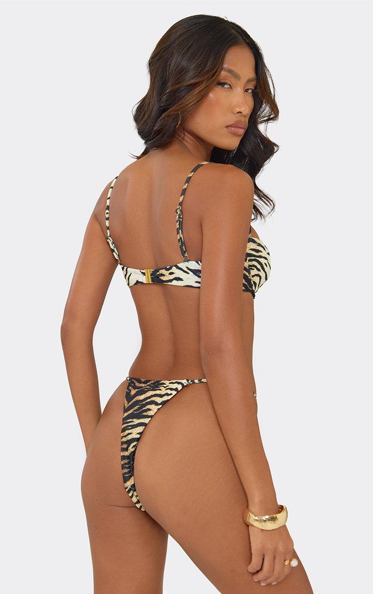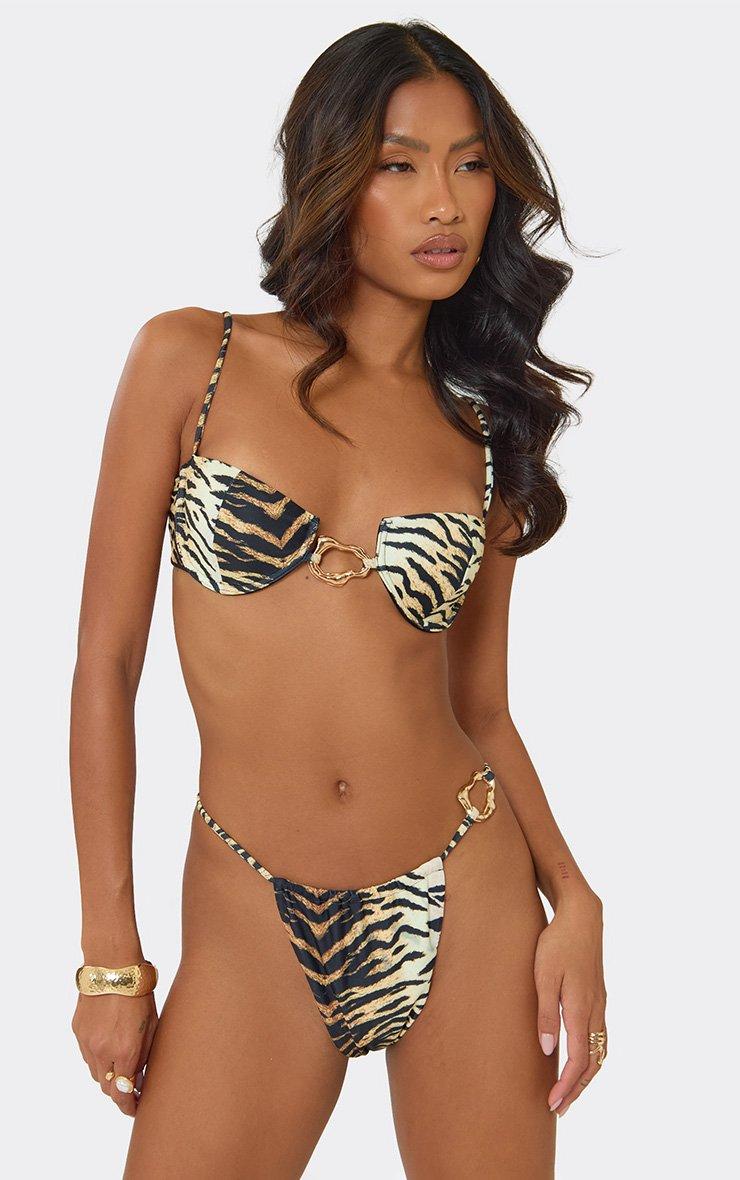 Strappy Hammered Abstract Trim Detail Underwired Bikini Set In Multi Tiger Print