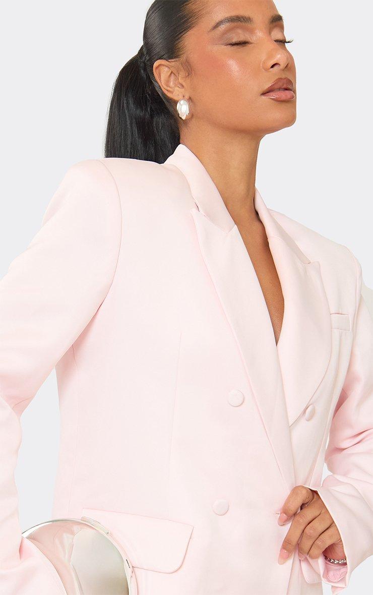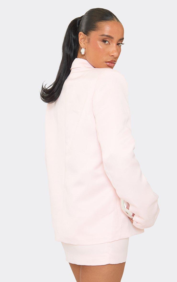 oversized button front structured blazer in pink satin