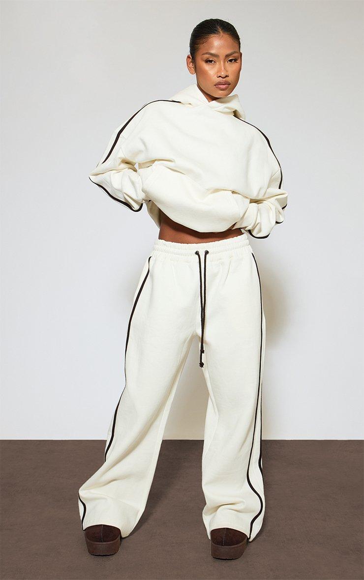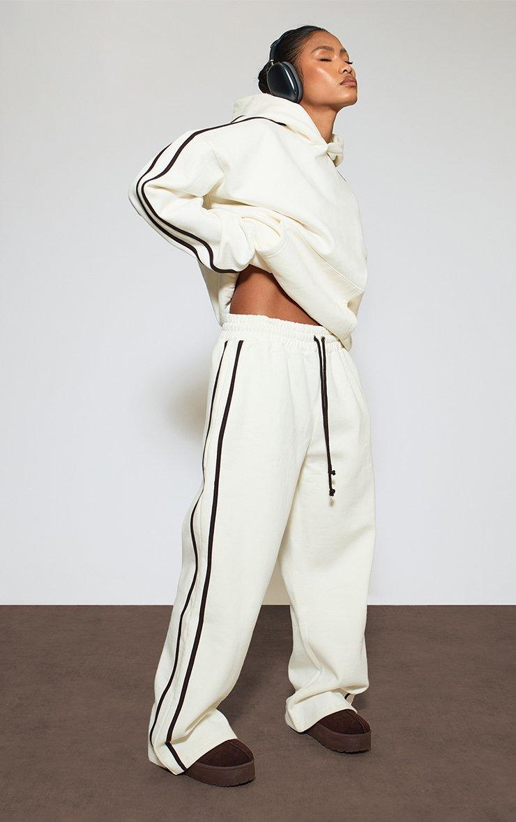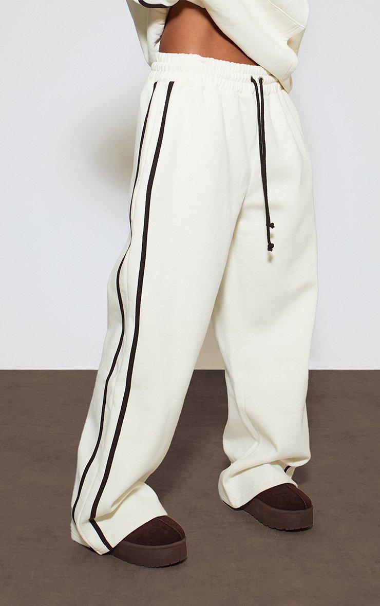 Heavyweight Low Rise Drawstring Contrast Stripe Wide Leg Joggers In Cream