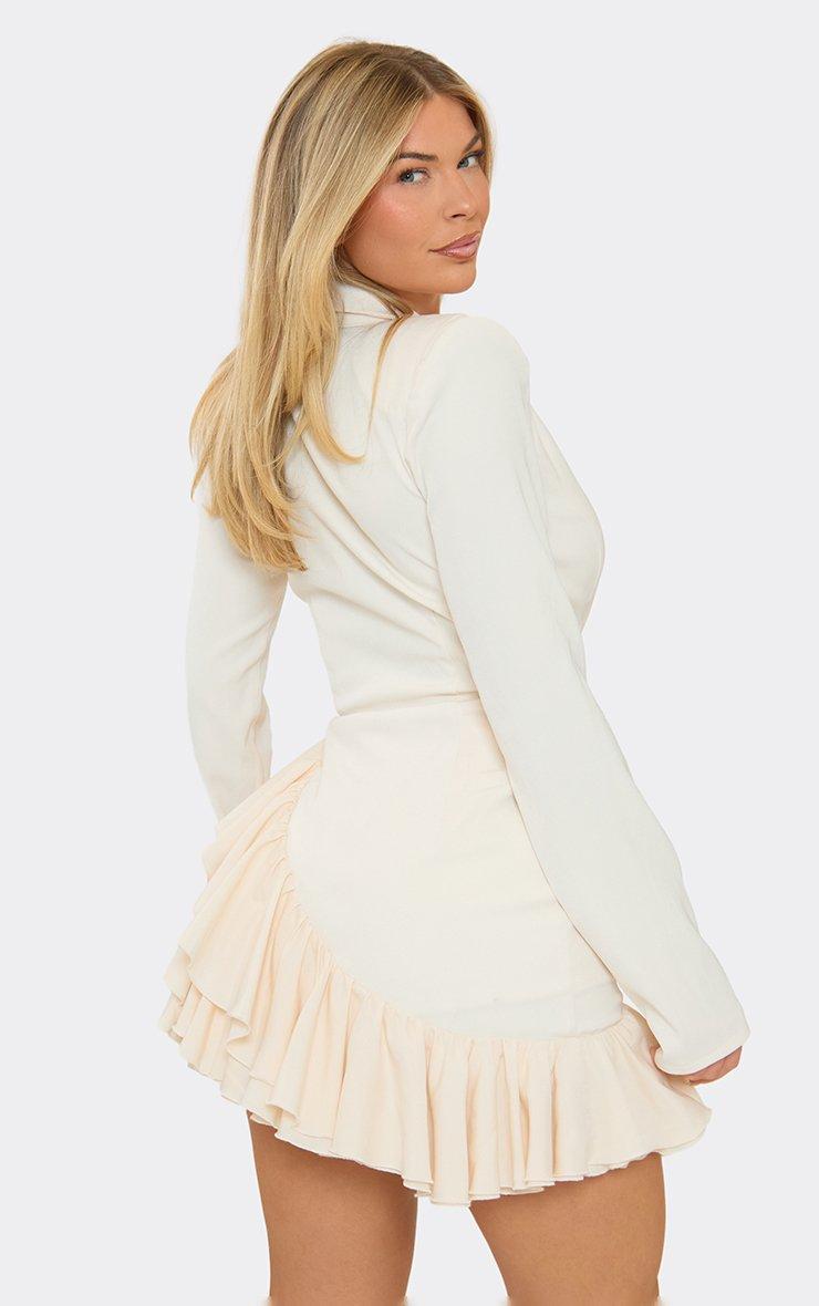 Plunge Ruffle Asymmetric Hem Detail Blazer Playsuit In Cream