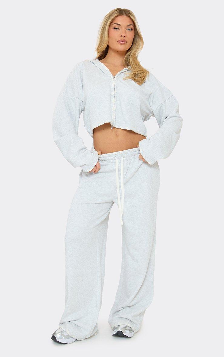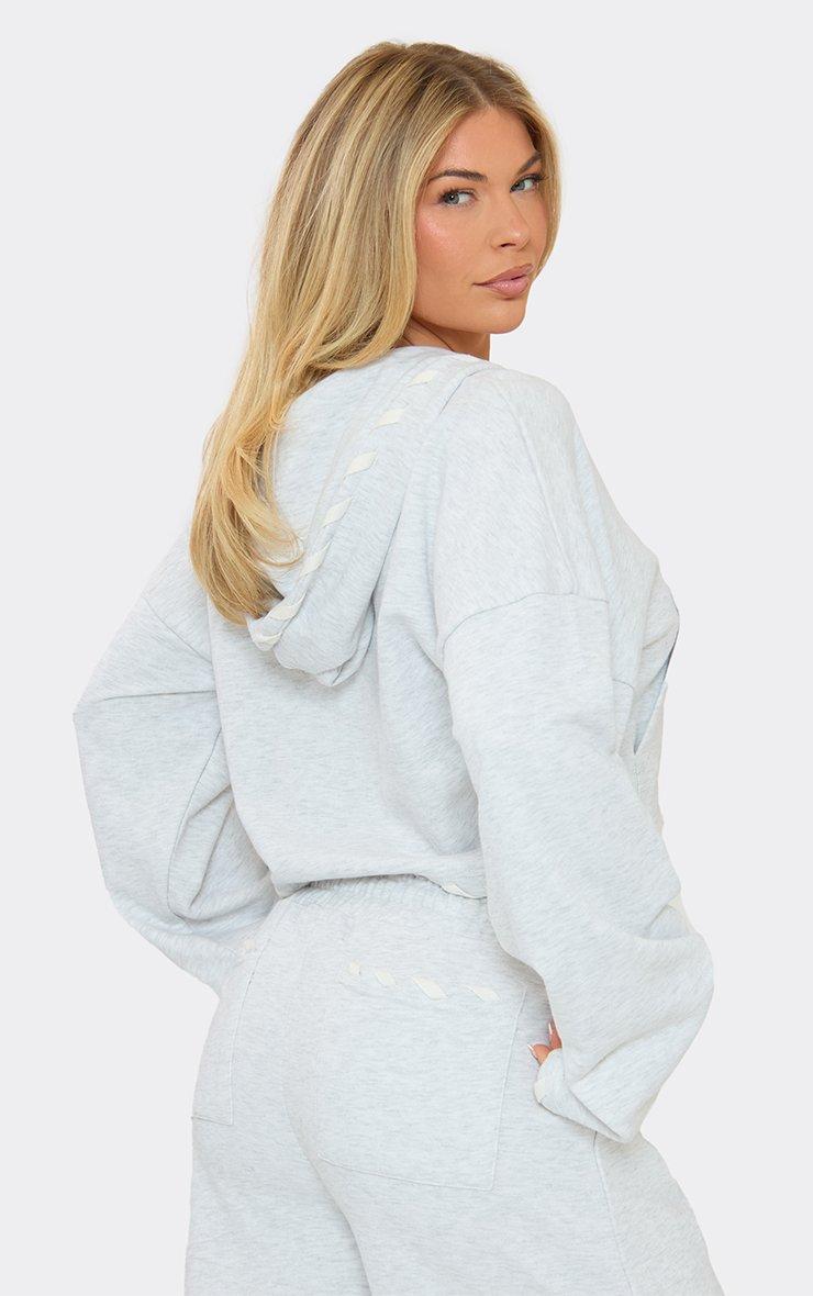 contrast lace up double zip-up detail jacket in light grey marl