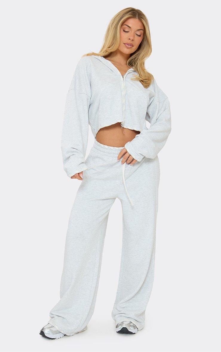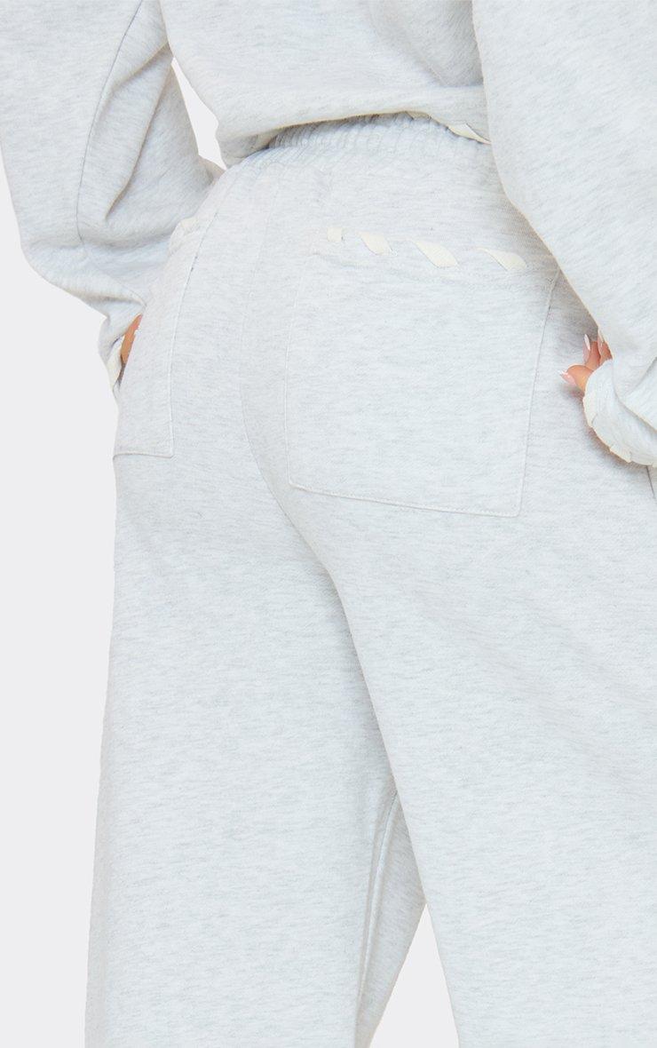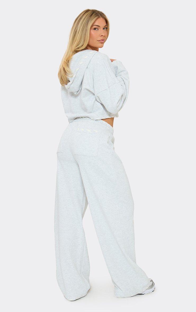 low rise drawstring contrast lace up detail wide leg joggers in light grey marl