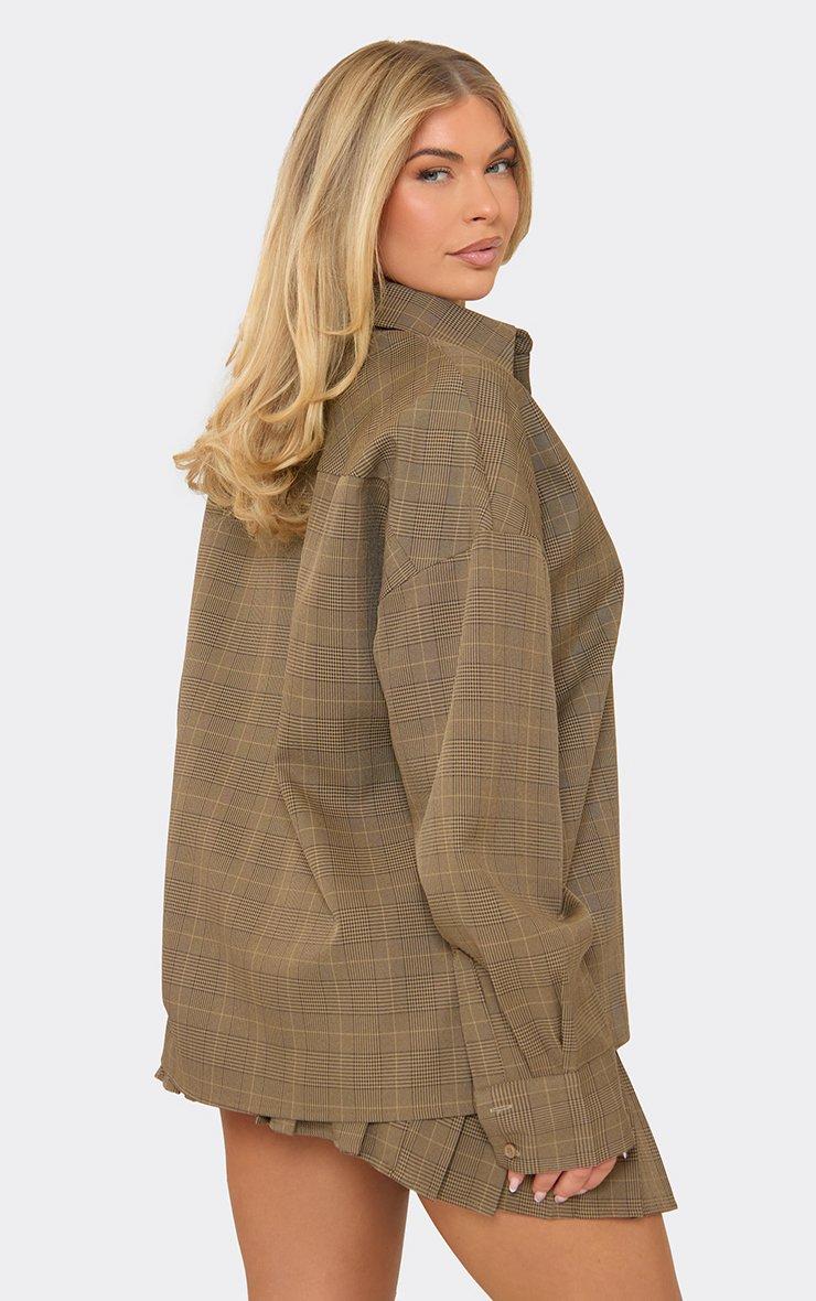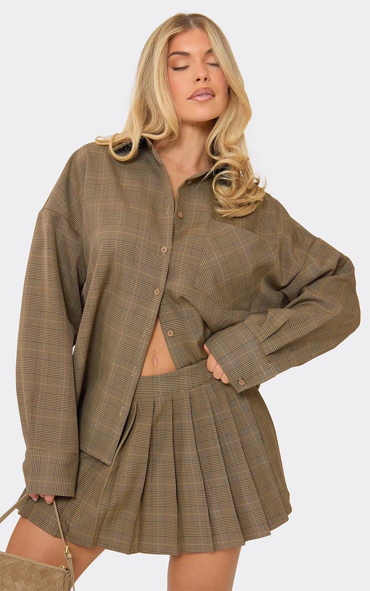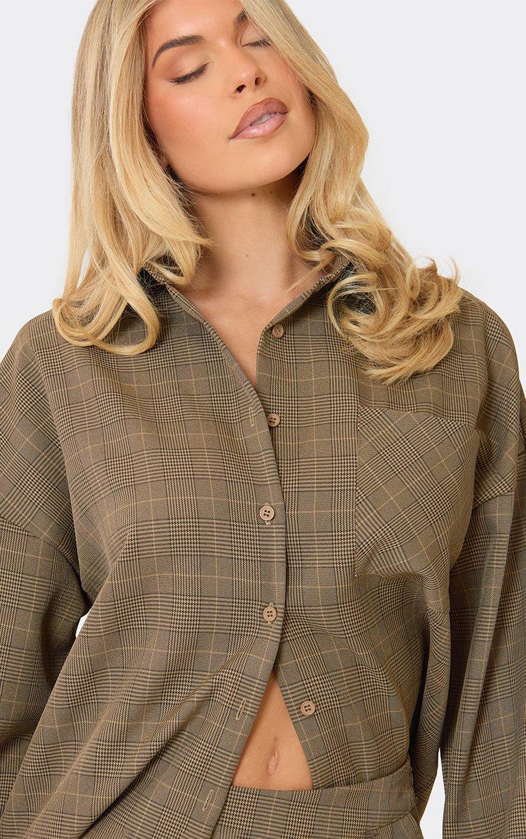 Oversized Button Through Pocket Front Shirt In Brown Check Print