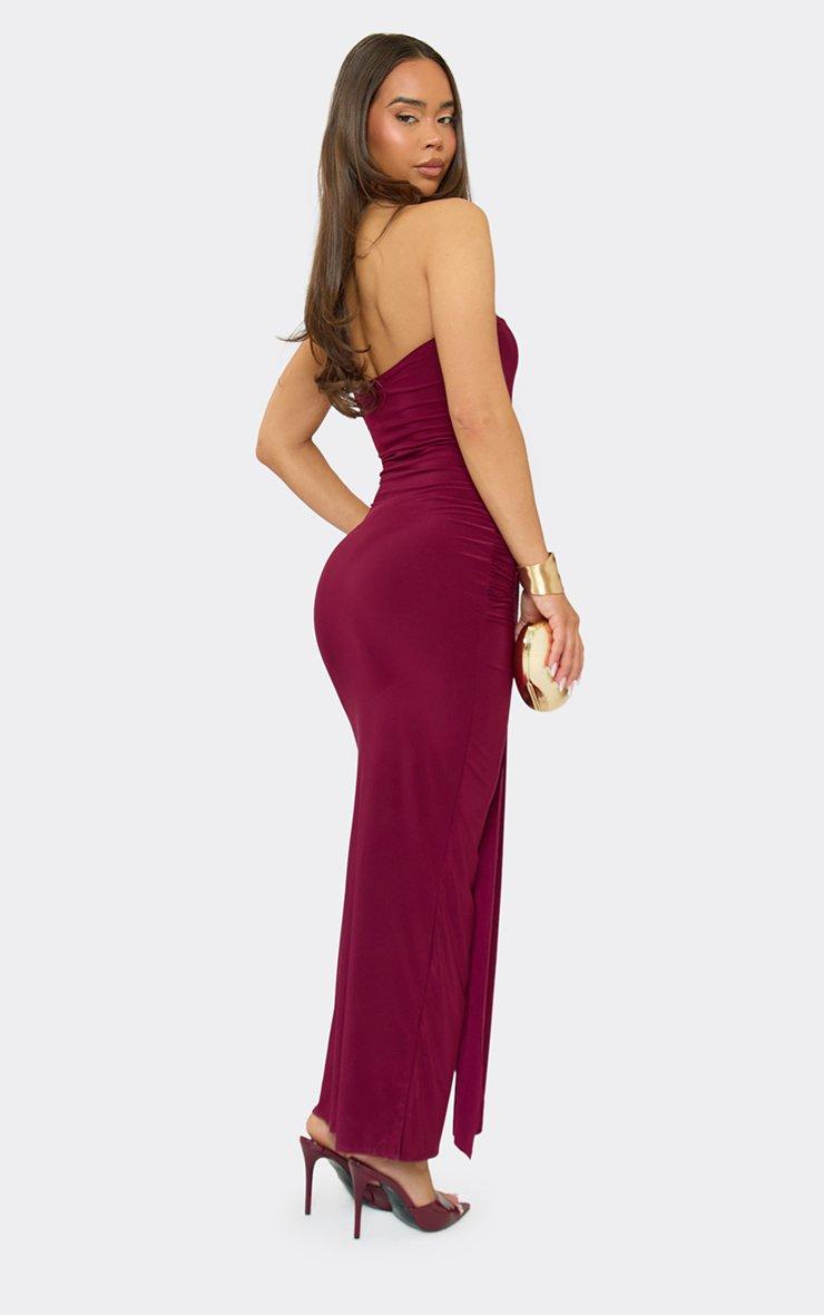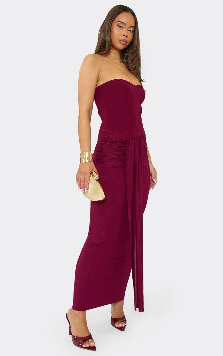 Bandeau Drape Front Maxi Dress In Burgundy