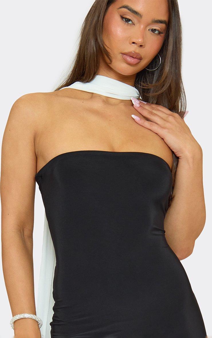 Bandeau Contrast Scarf Detail Mini Dress In Black