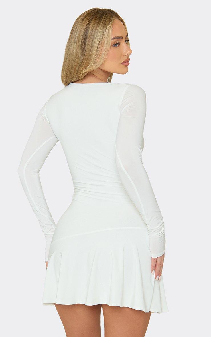 Long Sleeve Trim Frilled Hem Mini Dress In White