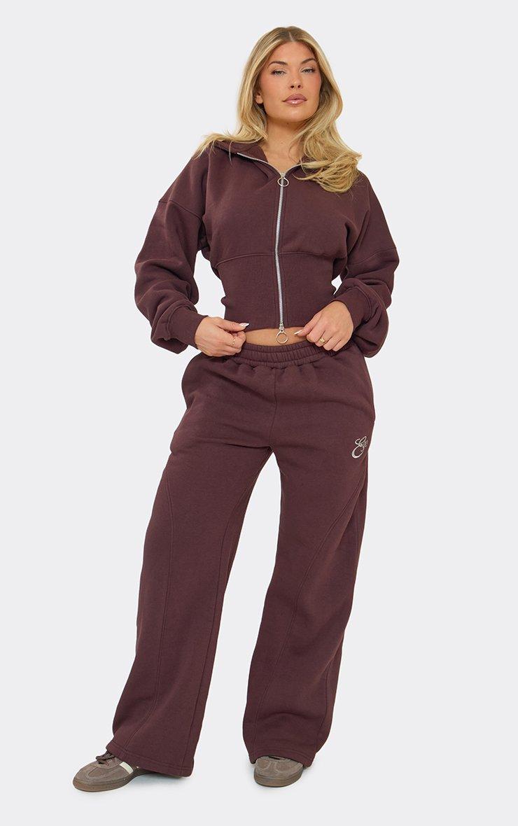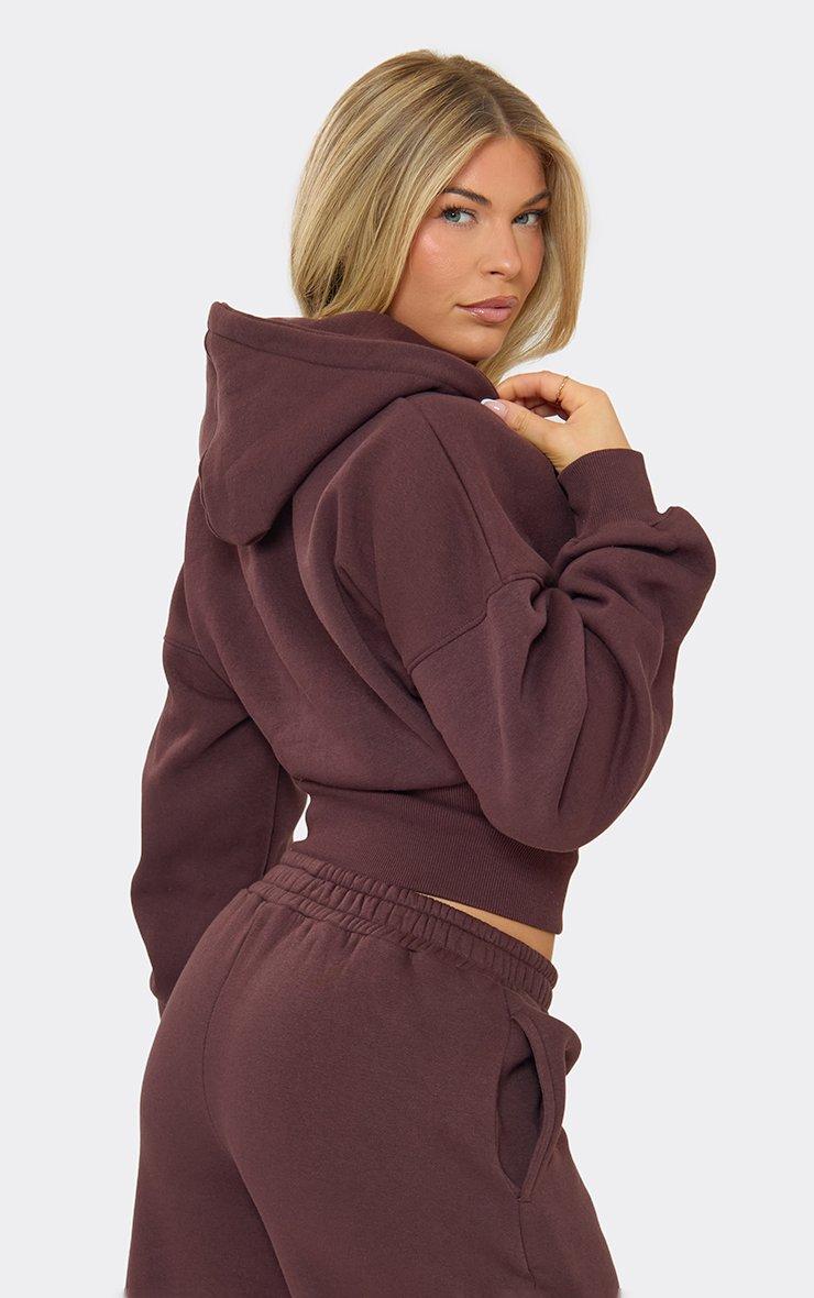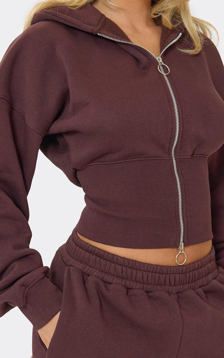 Cinched Waist Double Zip Up Detail Hoodie In Chocolate Brown