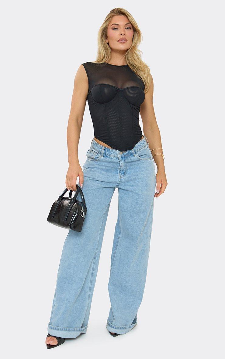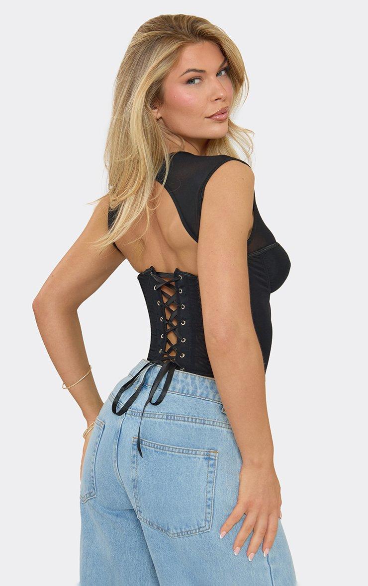 Cap Sleeve Corset Top In Black Mesh