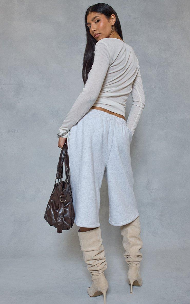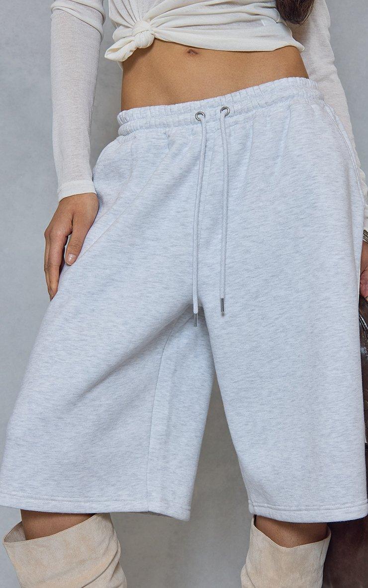 Drawstring Piping Detail Sweat Shorts In Grey Marl
