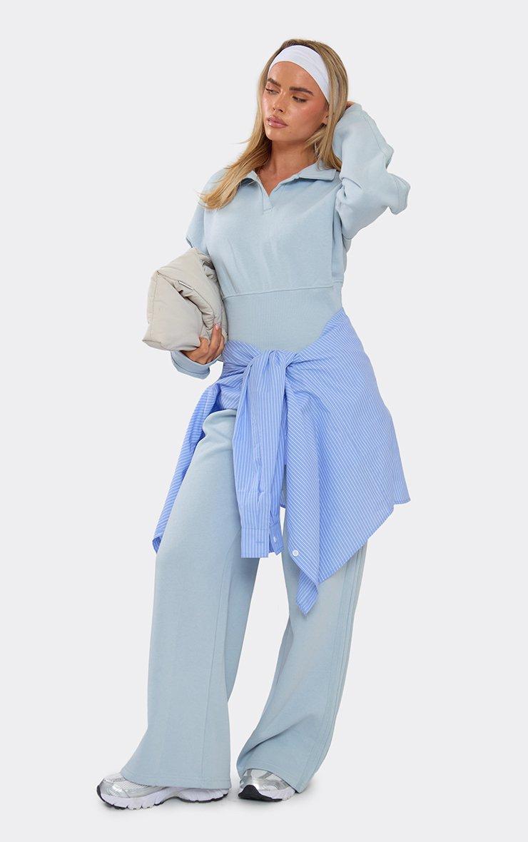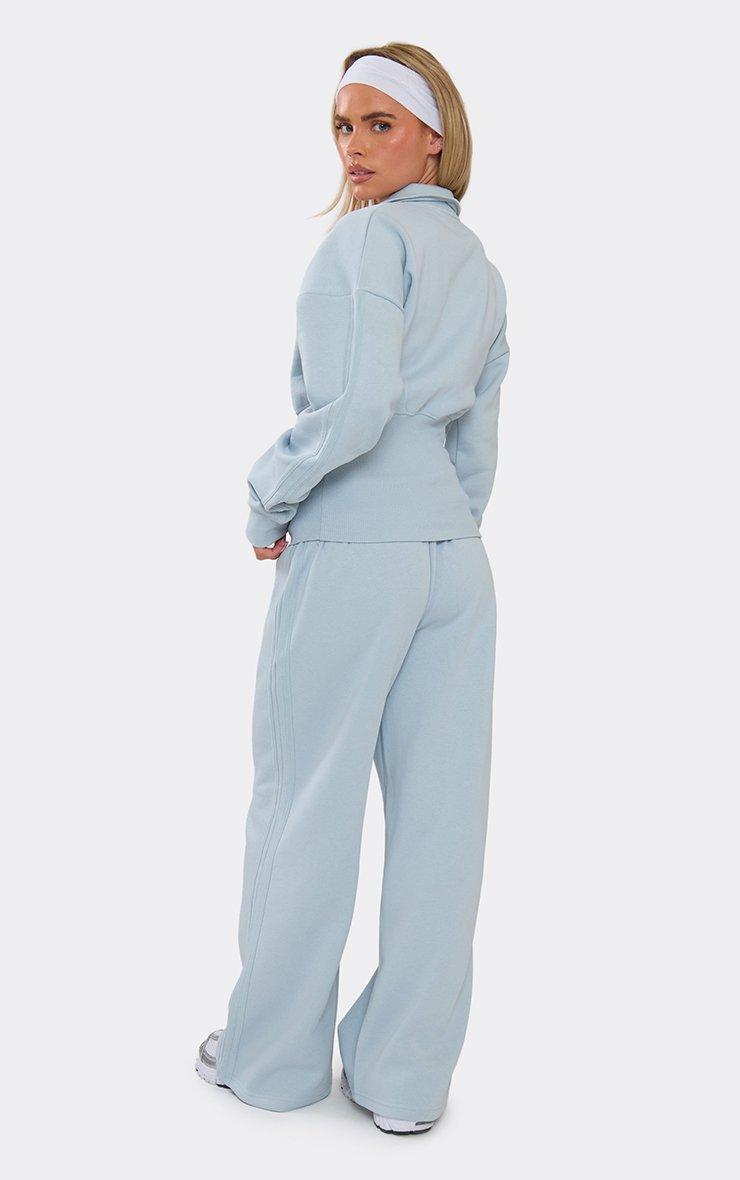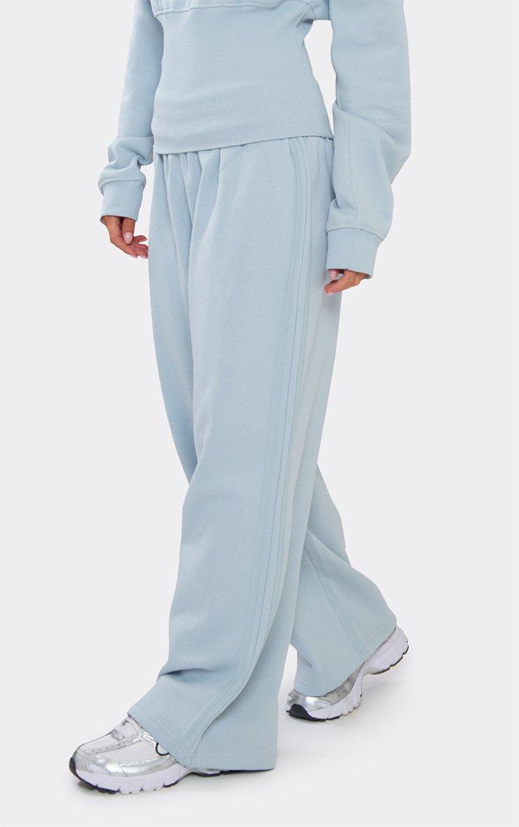 low rise elastic waistband side stripe detail wide leg joggers in blue