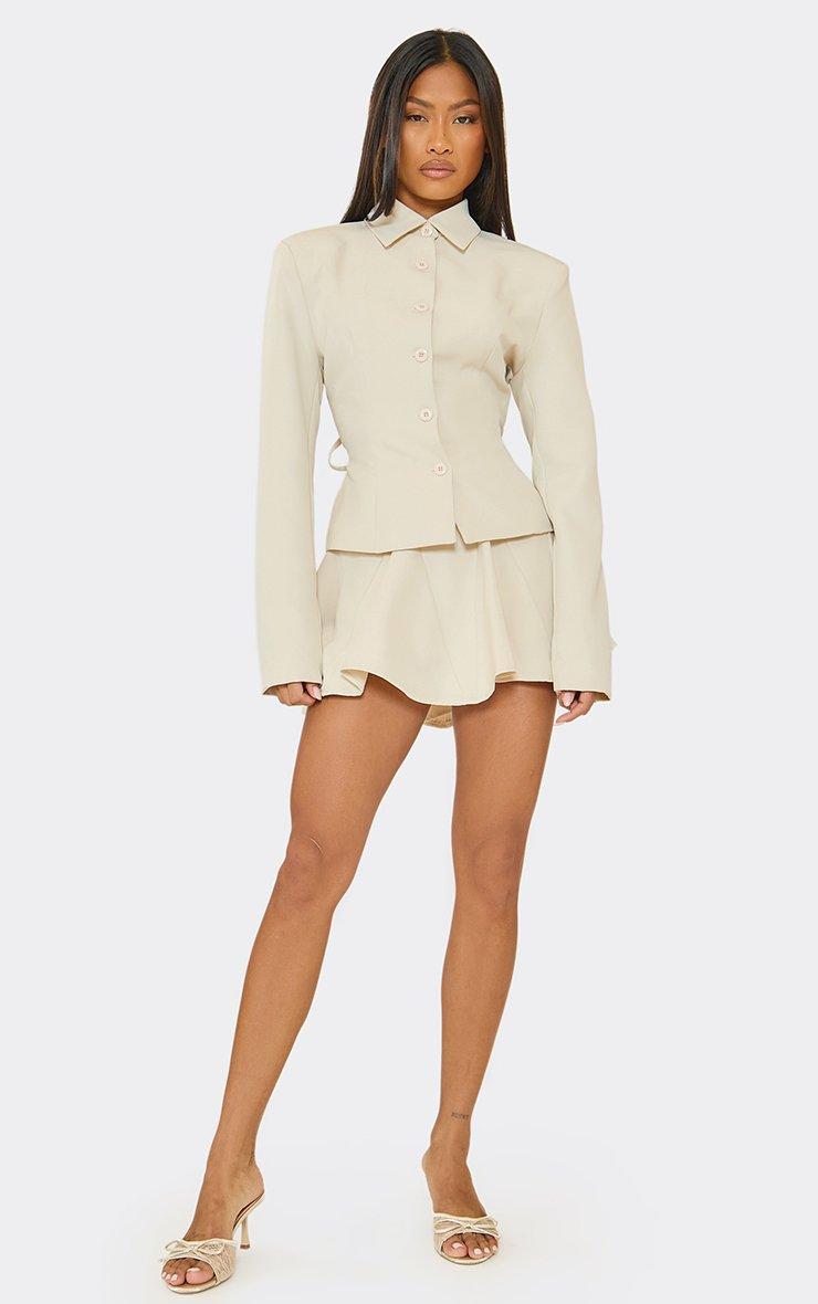 Mid Rise Pleated Detail Mini Skirt In Stone