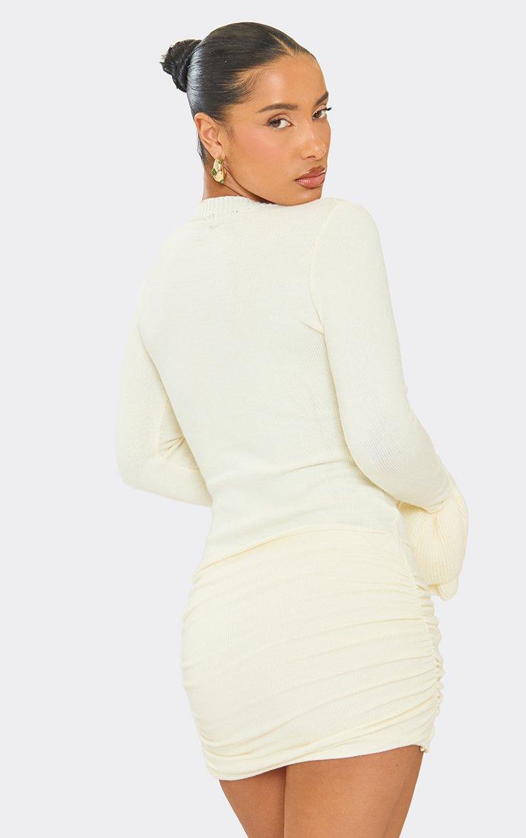 Ruffle Sleeve Ruched Front Mini Dress In Cream Knit