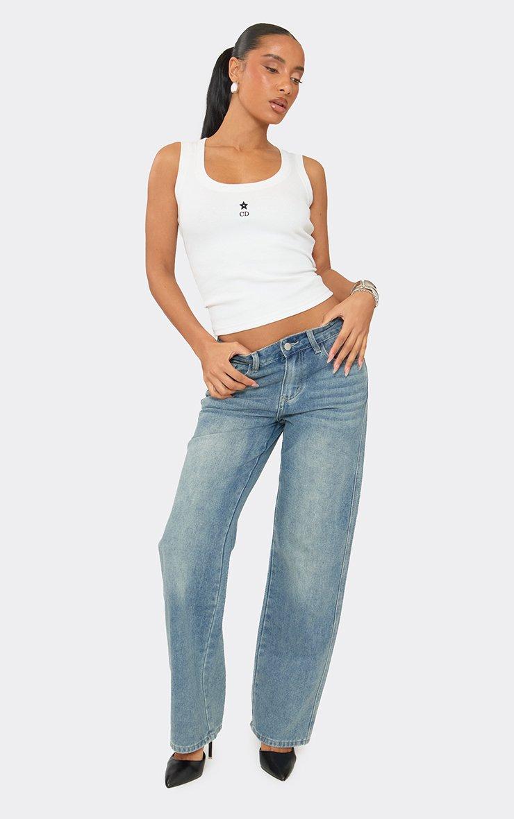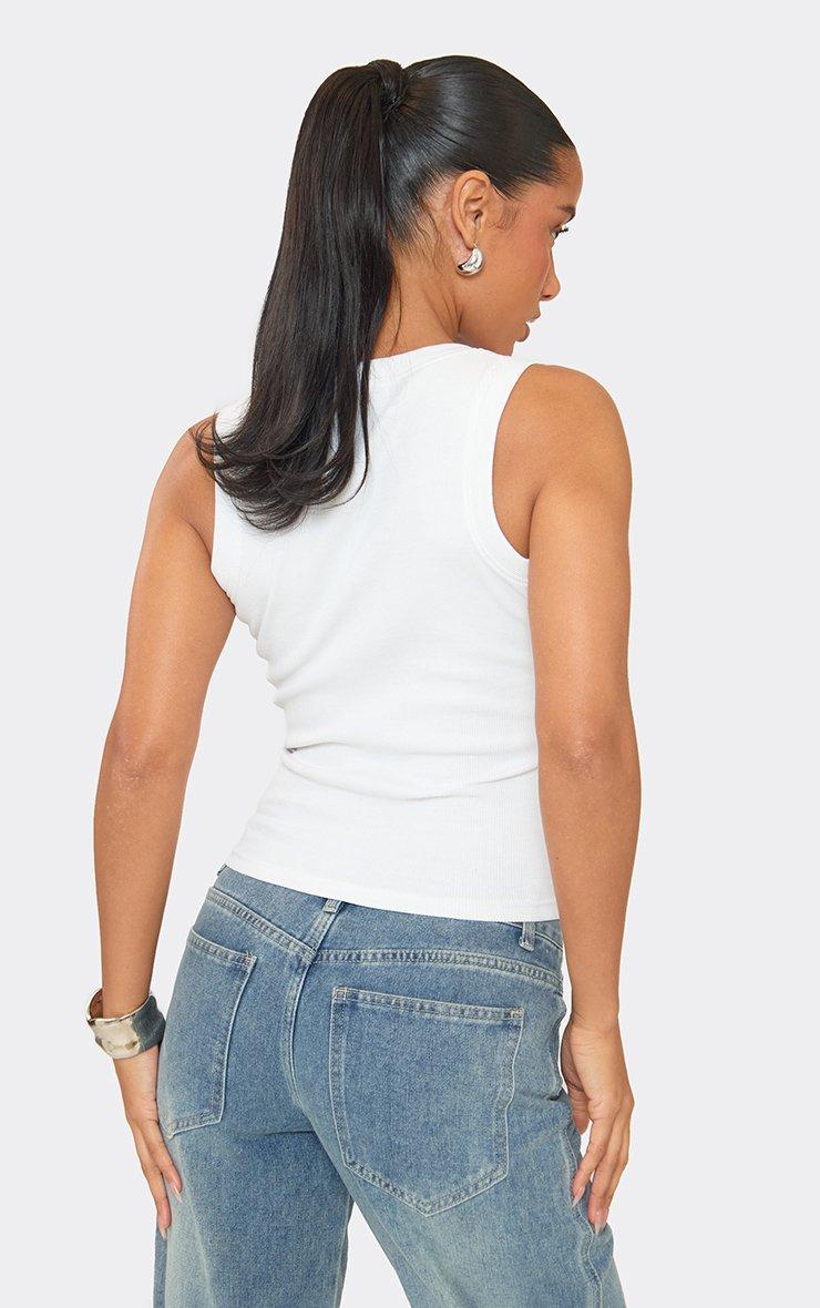 Scoop Neck Logo Detail Vest Top In White