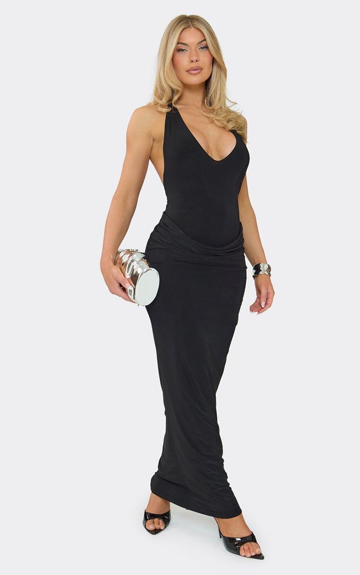 Plunge Halterneck Maxi Dress In Black