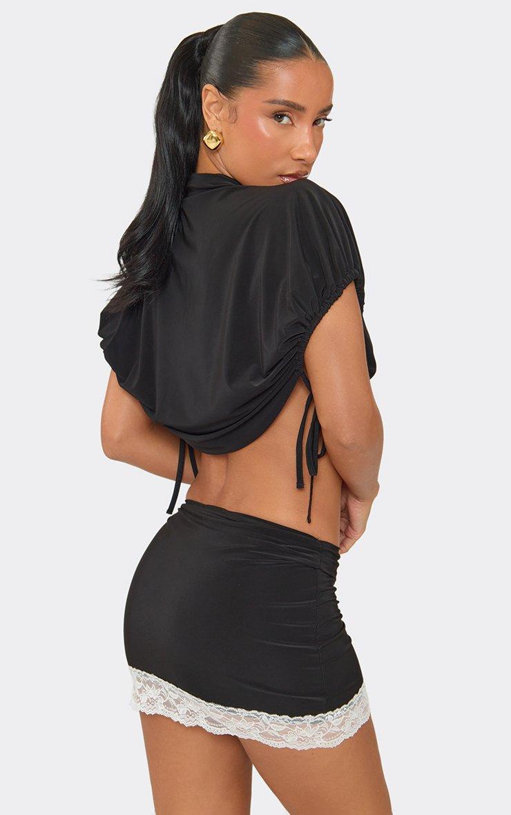 low rise contrast lace trim mini skirt in black