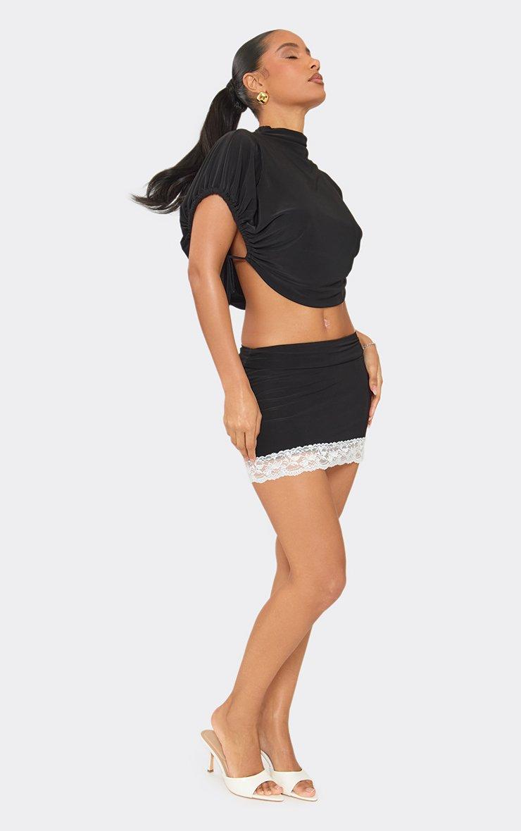 Low Rise Contrast Lace Trim Mini Skirt In Black