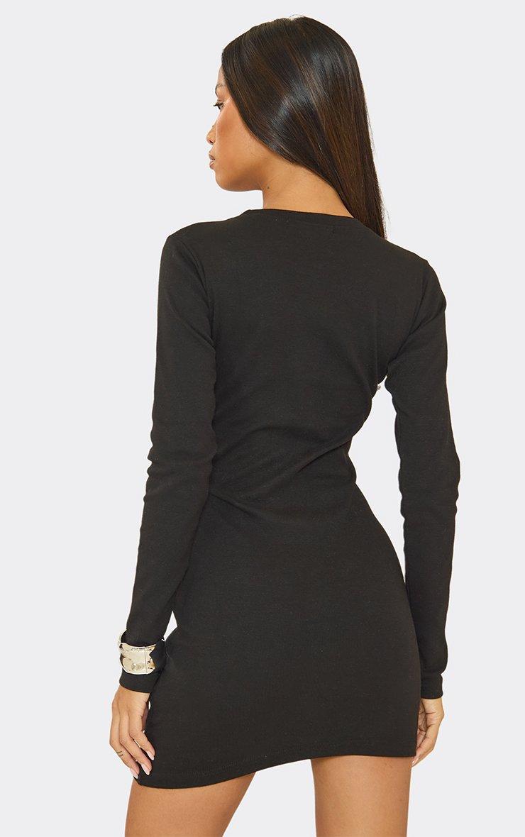long sleeve corset detail mini dress in black