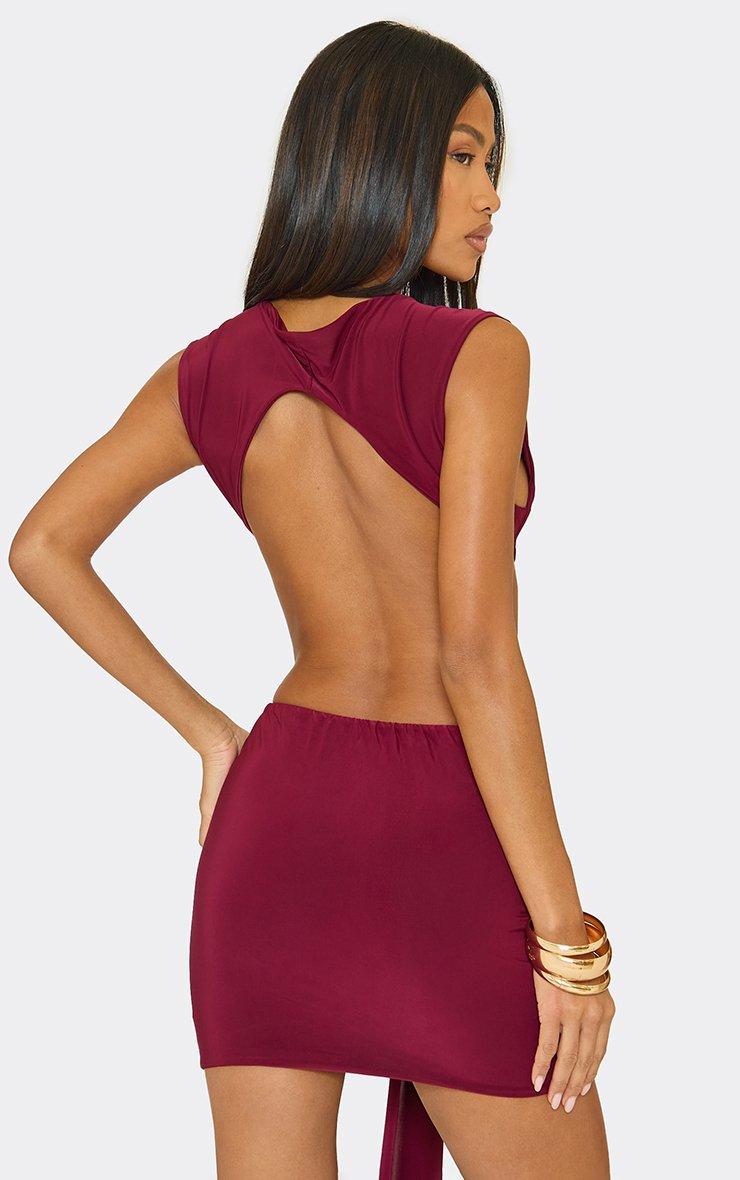 Boat Neck Cut Out Drape Trim Detail Mini Dress In Red