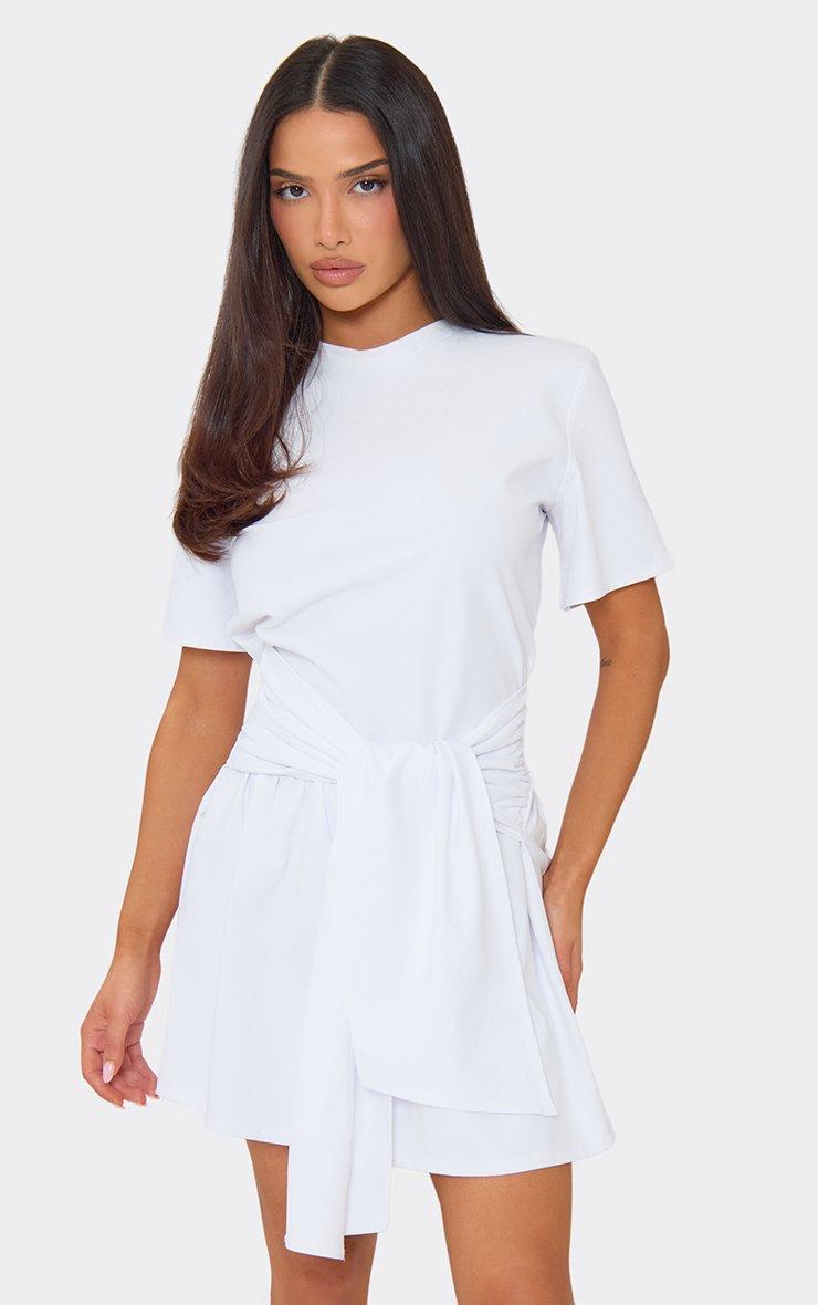 Short Sleeve Wrap Tie Detail T-Shirt Dress In White