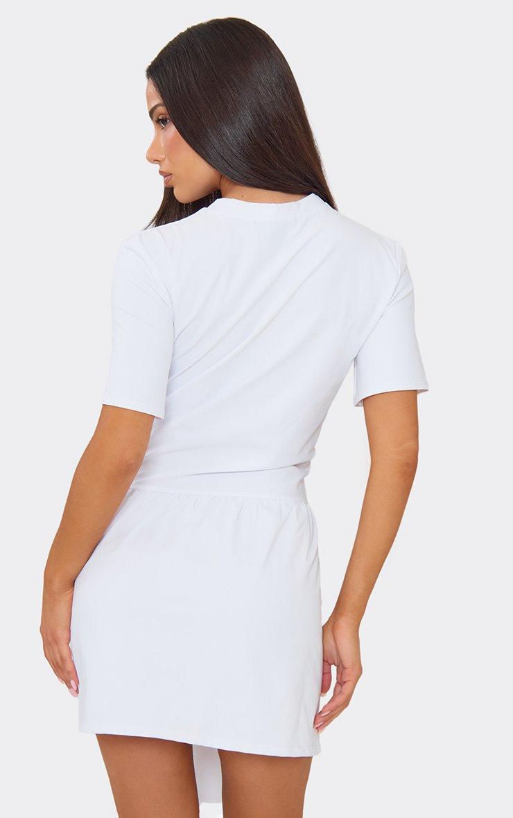 short sleeve wrap tie detail t-shirt dress in white