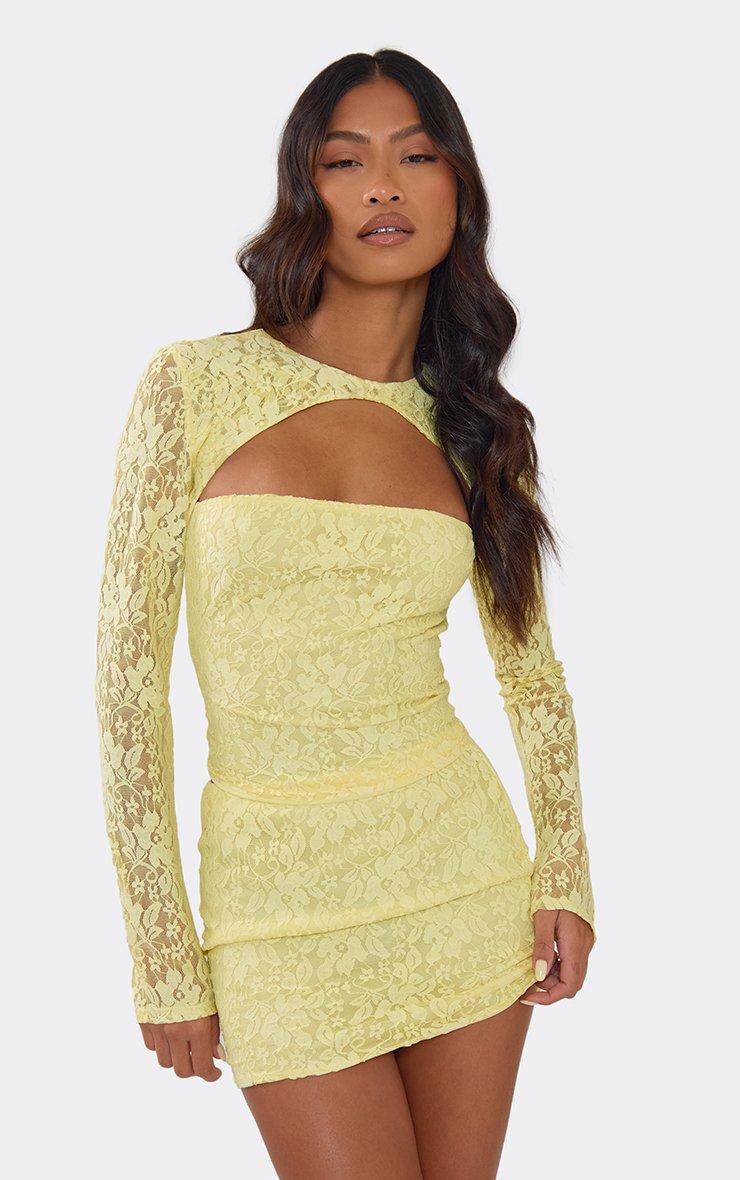 Long Sleeve Button Neck Cut Out In Lemon Lace