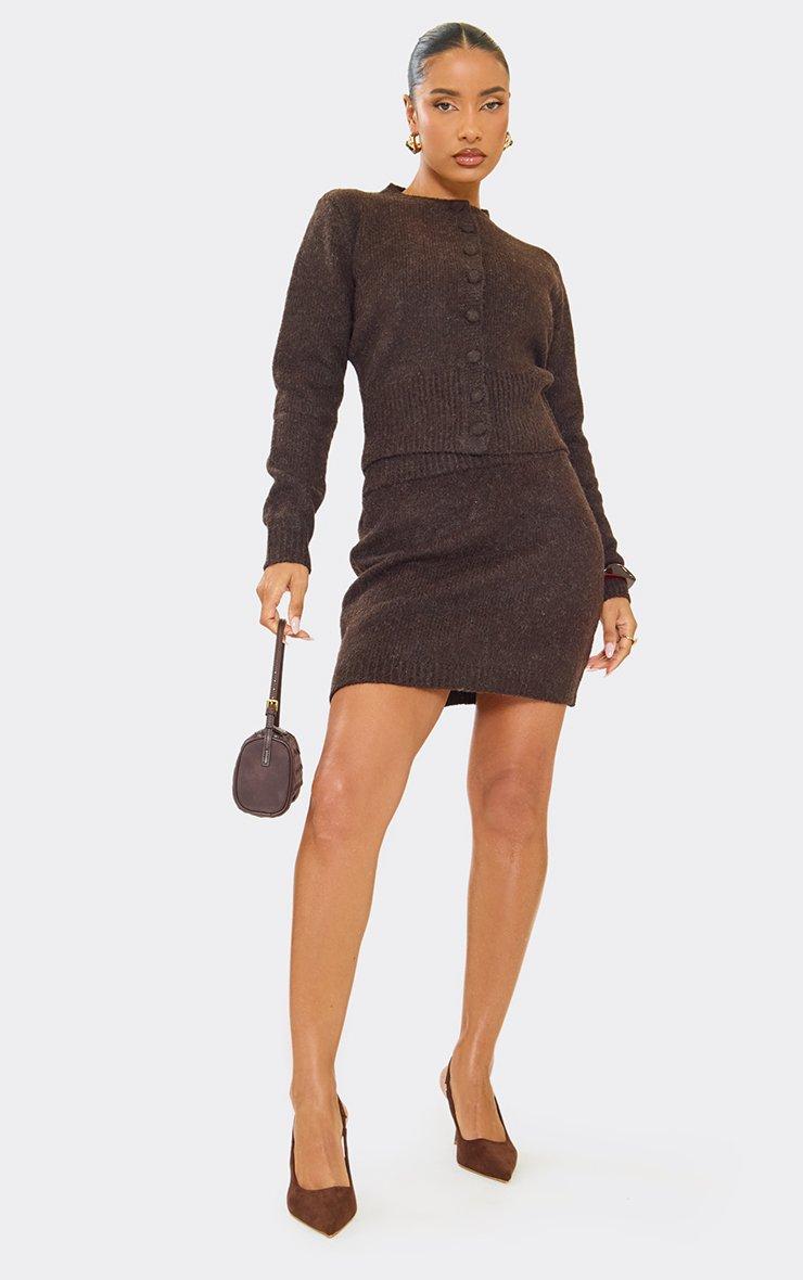 elastic waist mini skirt in chocolate brown soft knit