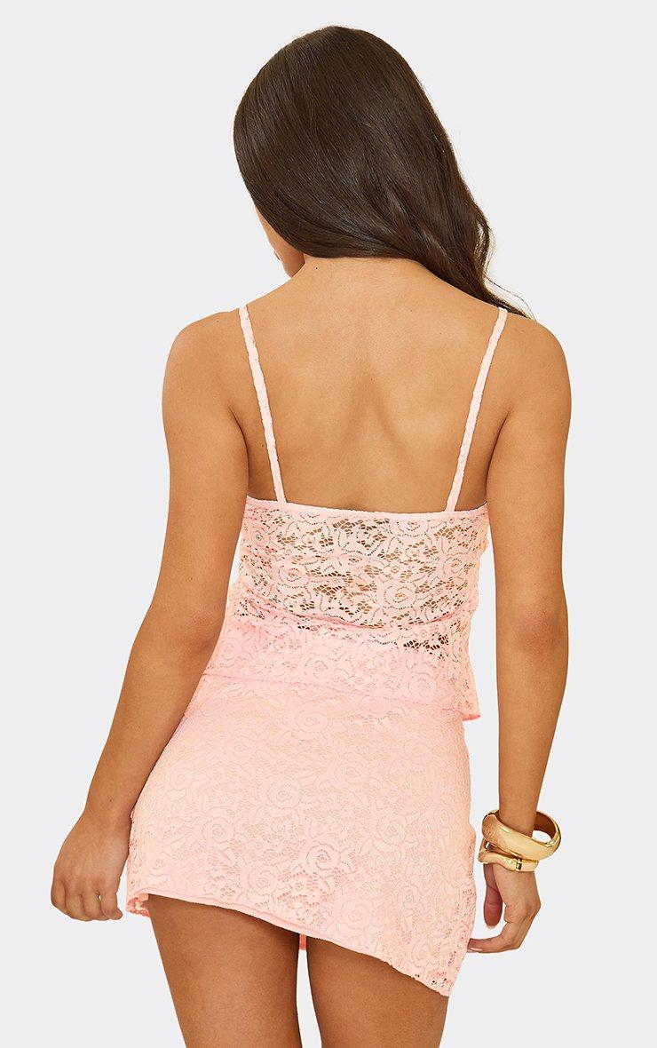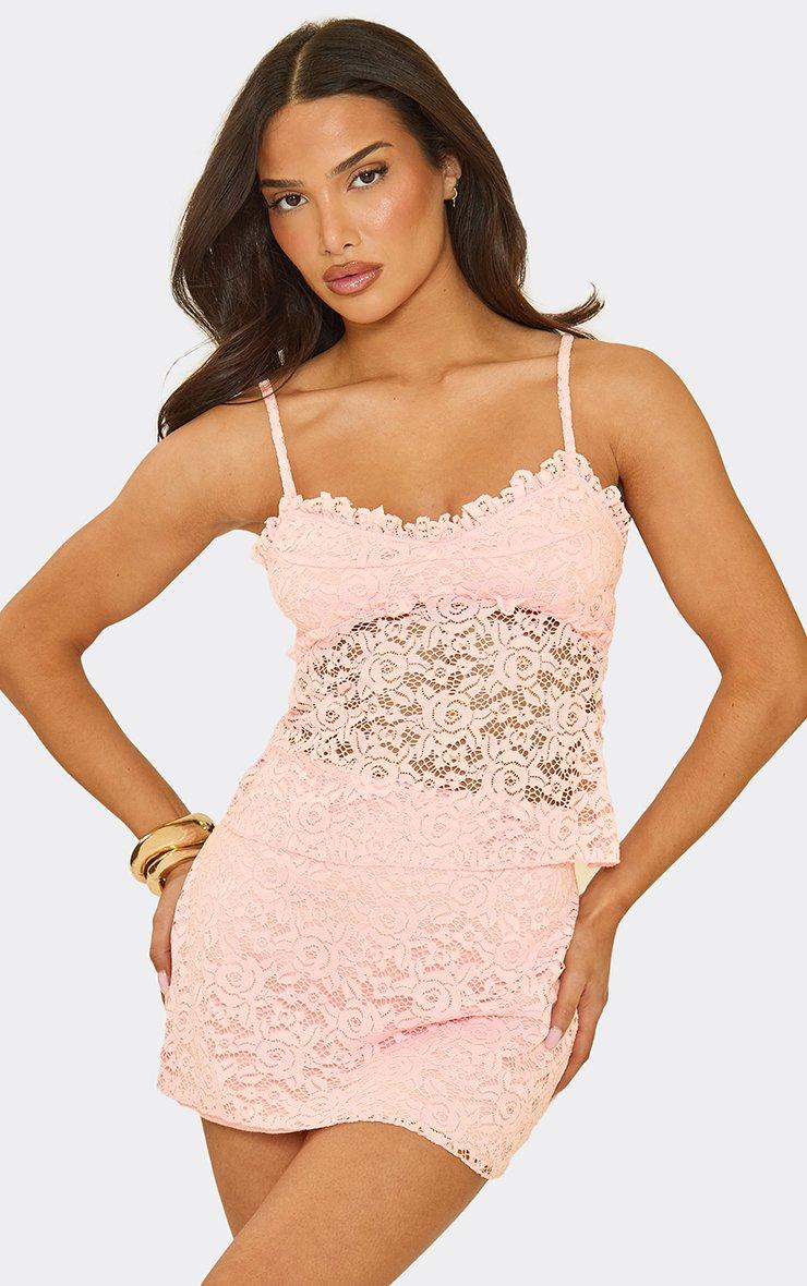 Strappy Frill Hem Detail Top In Baby Pink Lace