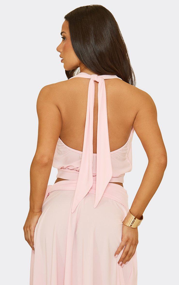 V Halter Neck Slouchy Crop Top In Baby Pink