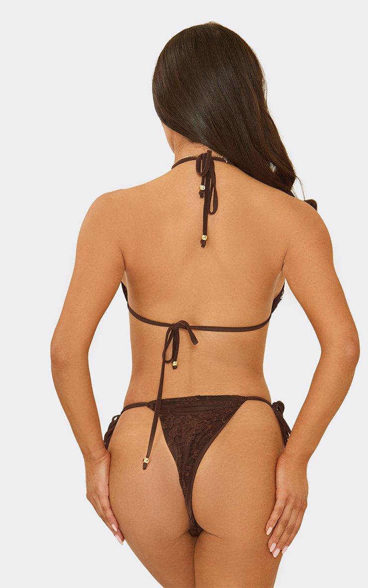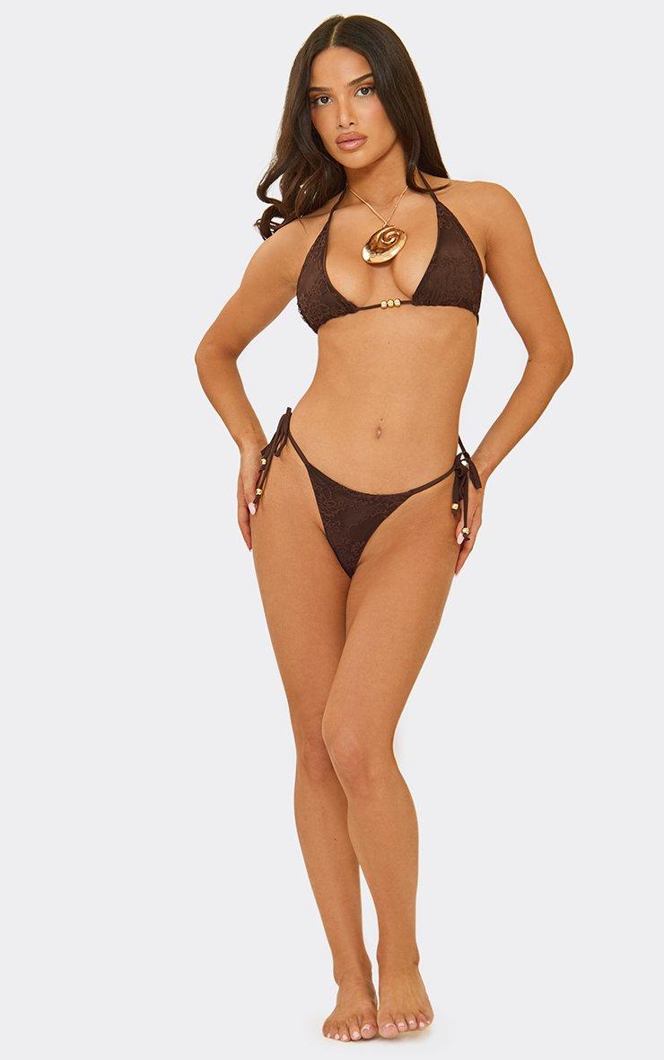 Triangle Beaded Detail Bikini Set In Chocolate Brown