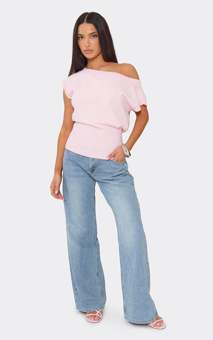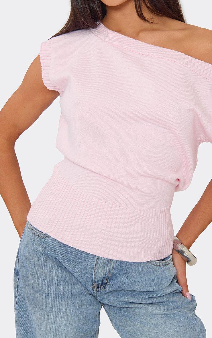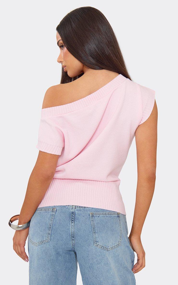 off the shoulder blouson top in baby pink knit
