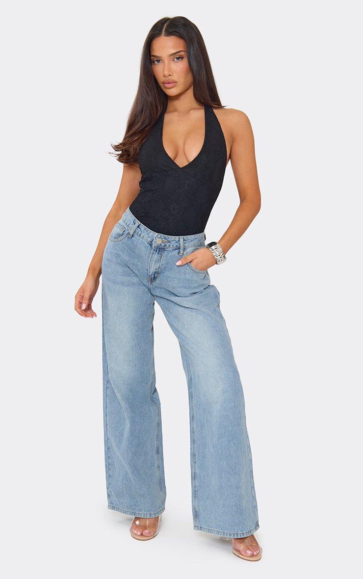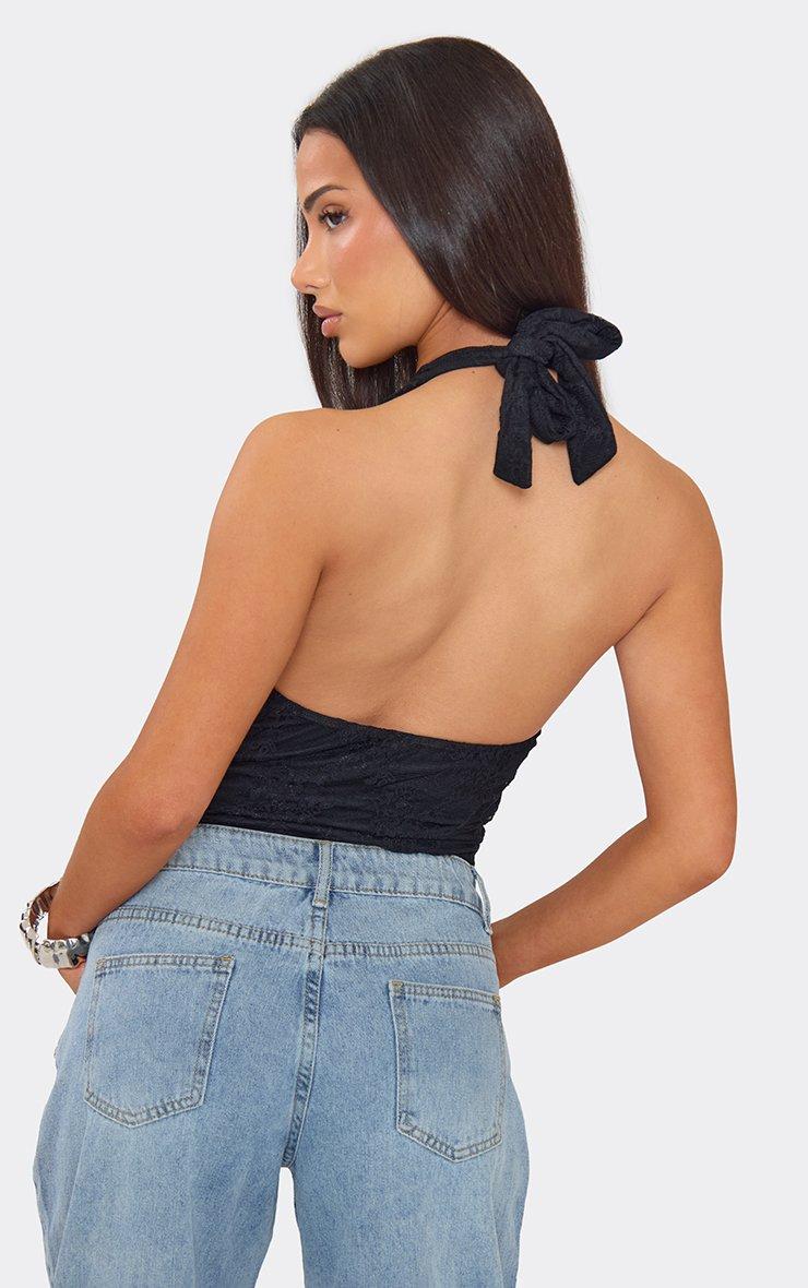 plunge neck bodysuit in black lace