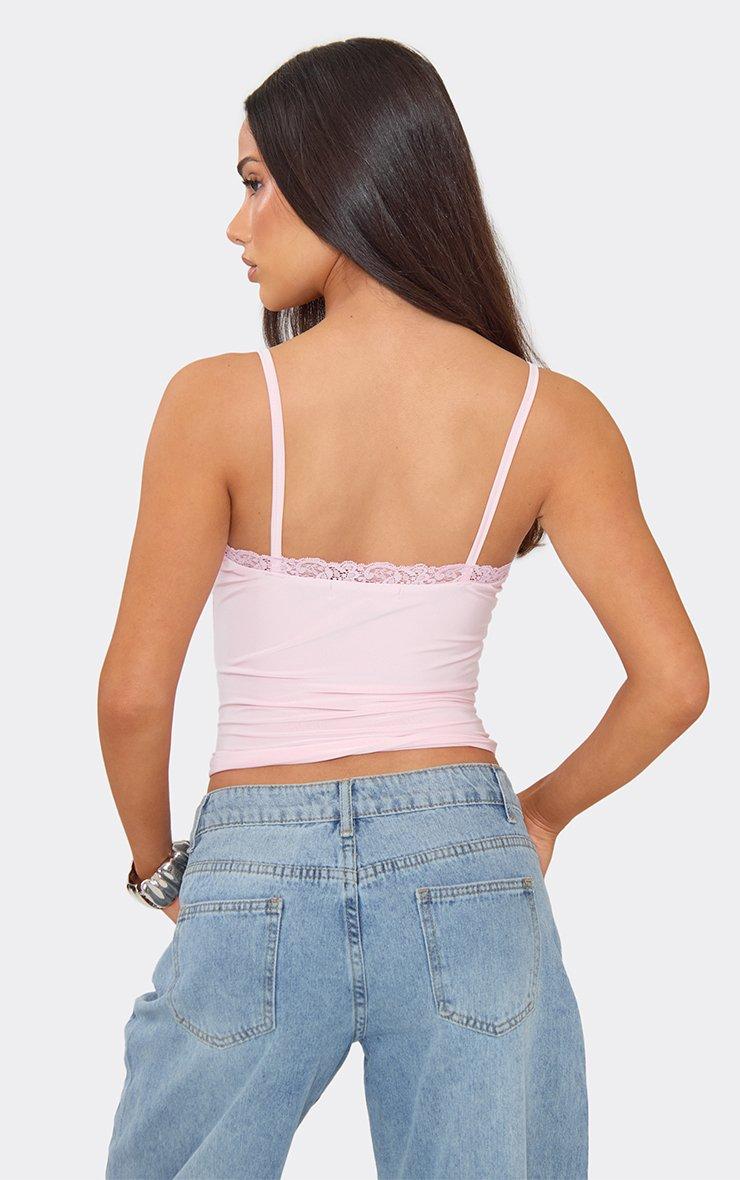 Lace Trim Detail Cami Vest Top In Baby Pink