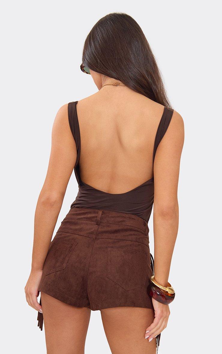 Fringe Side Detail Shorts In Brown Faux Suede
