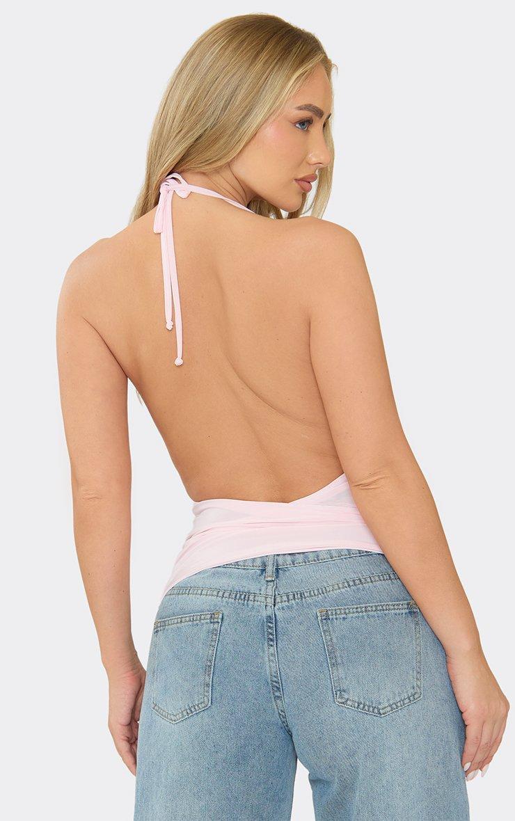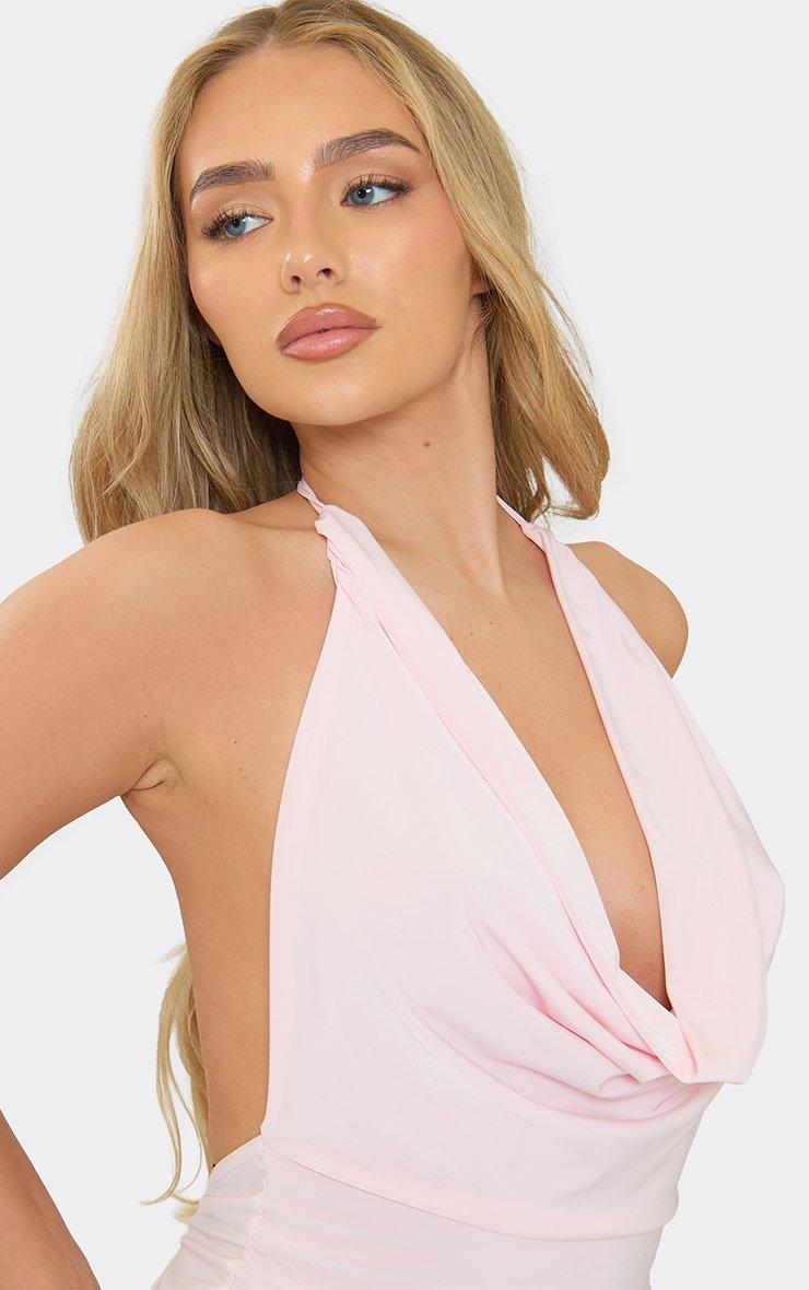 Halterneck Cowl Front Detail Top In Baby Pink