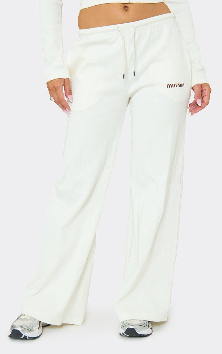 low rise drawstring embroidered min min logo wide leg joggers in cream