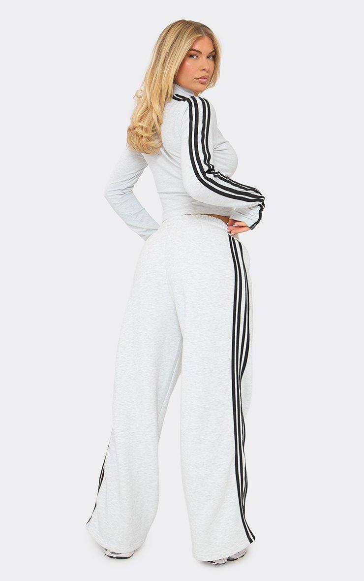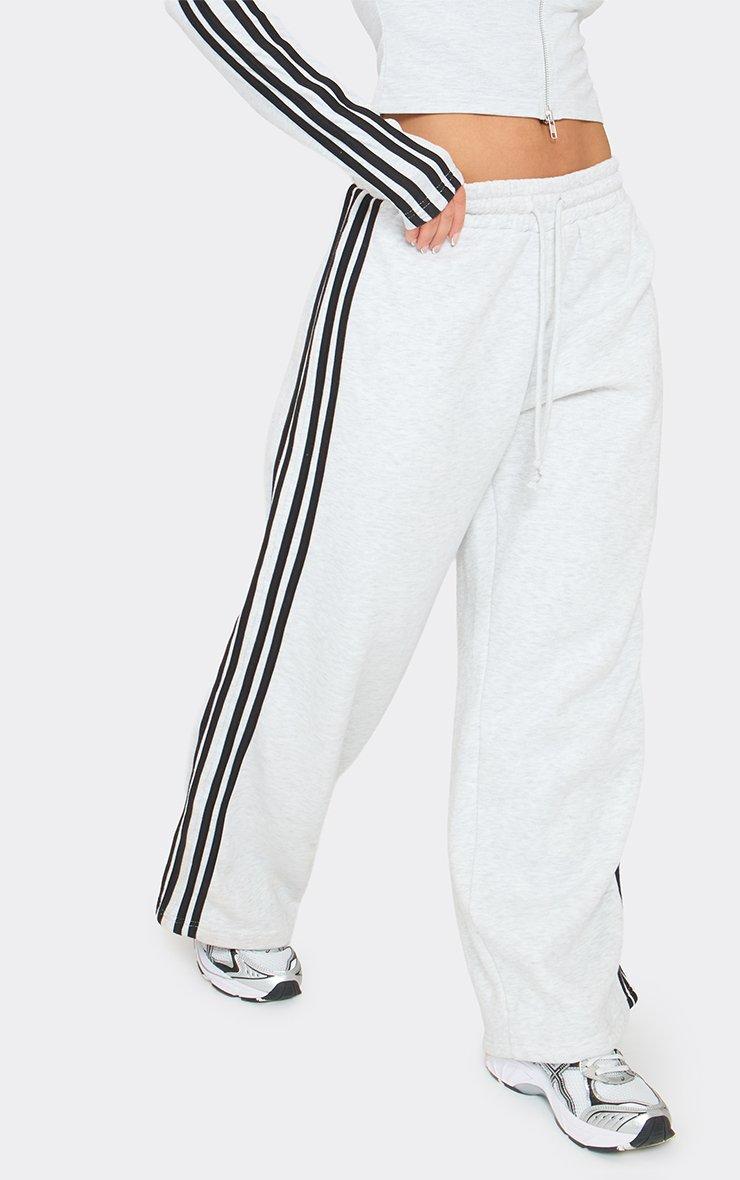Mid Rise Tie Waist Detail Contrast Stripe Wide Leg Jogger In Grey Marl
