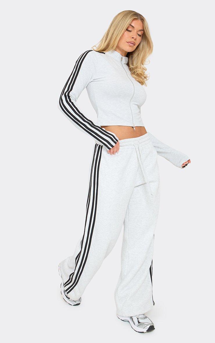 mid rise tie waist detail contrast stripe wide leg jogger in grey marl