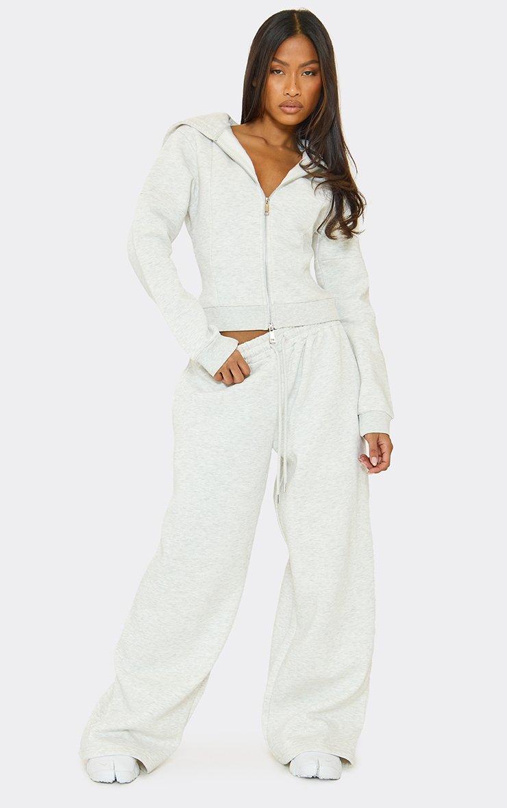drawstring waist wide leg fit joggers in light grey marl