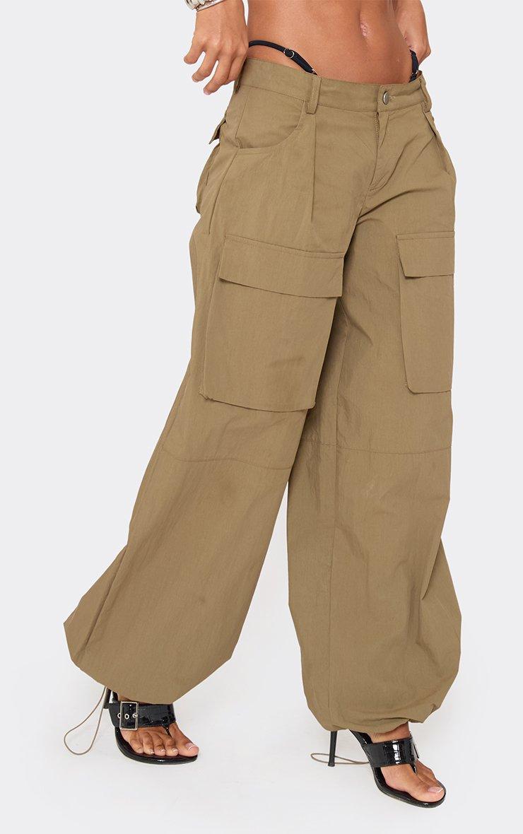 mid rise pocket front detail toggle hem cargo trousers in green