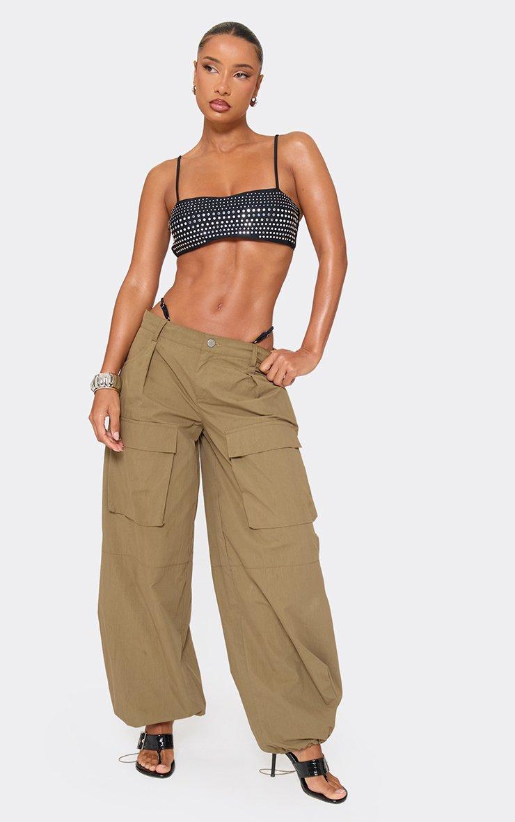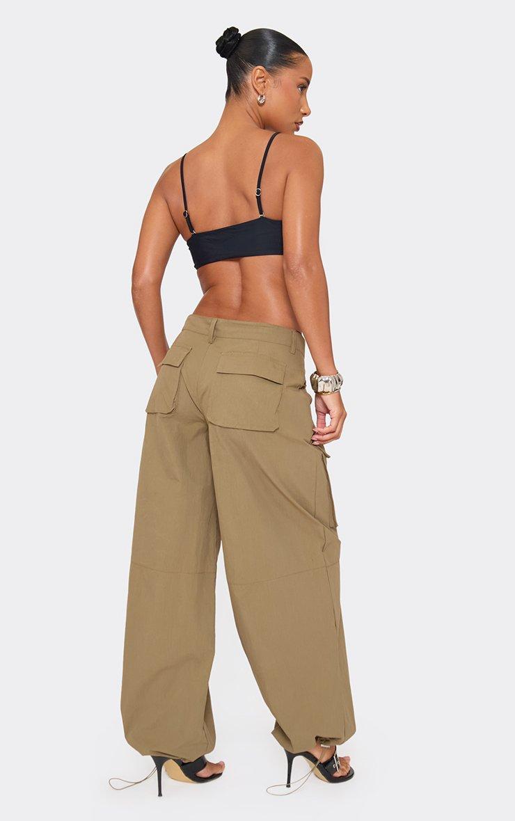 Mid Rise Pocket Front Detail Toggle Hem Cargo Trousers In Green