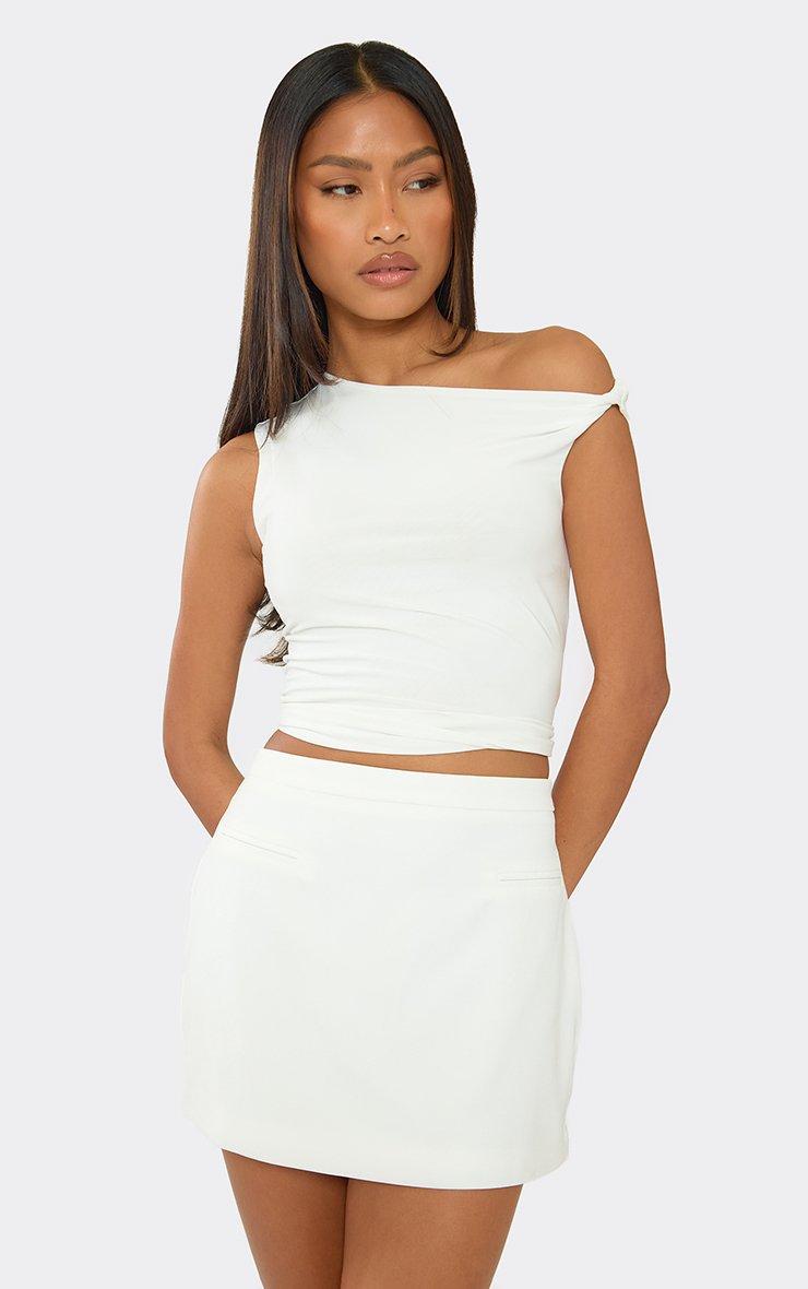 Mid Rise Pocket Detail Tailored Mini Skirt In White Woven