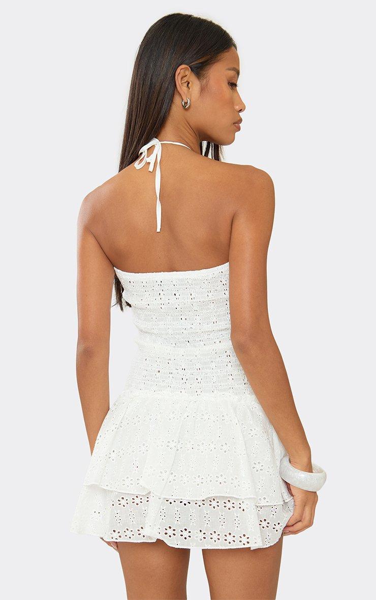 Halter Neck Frill Hem Mini Dress In White Broderie