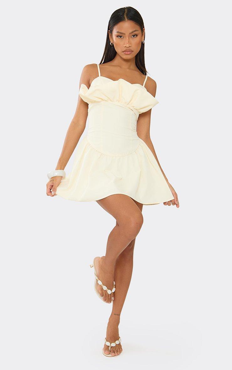 Strappy Frill Bust Detail Mini Dress In Yellow Woven