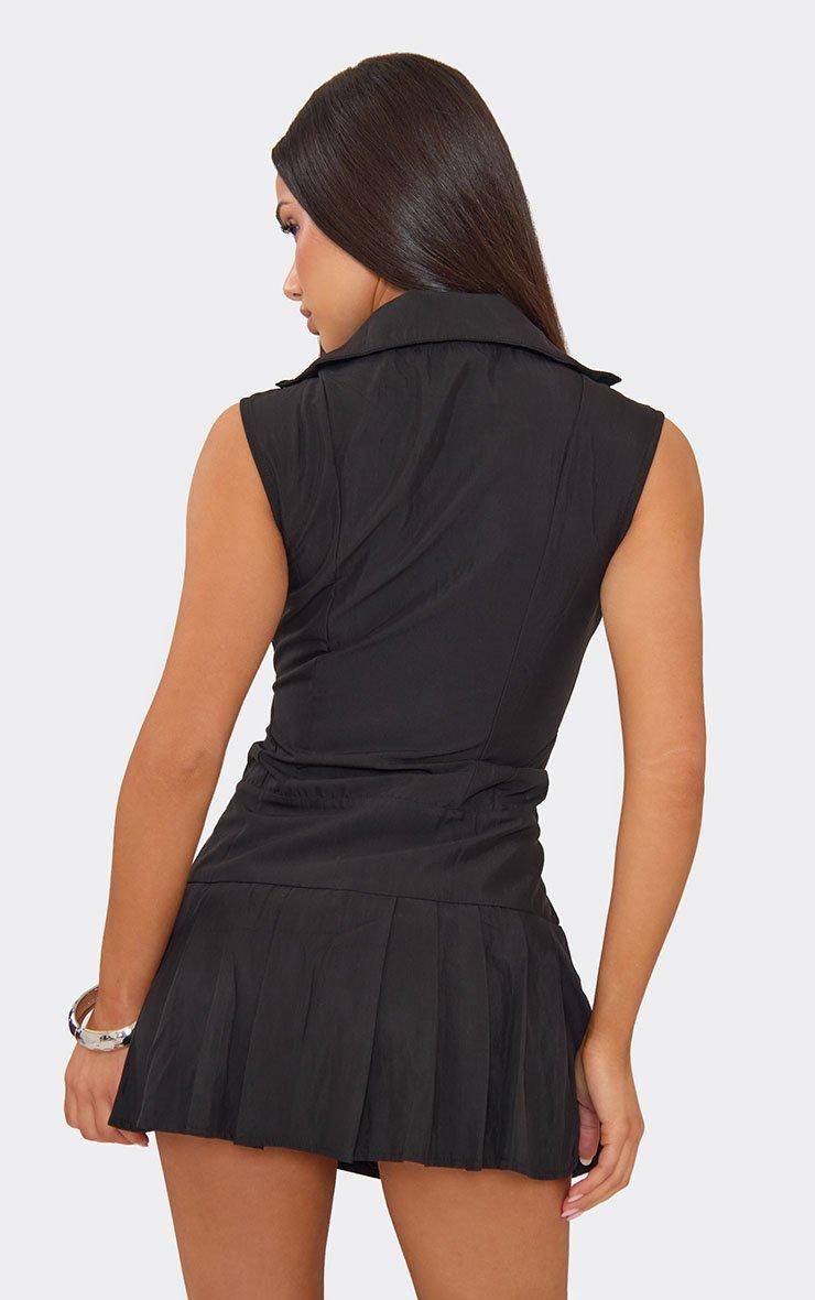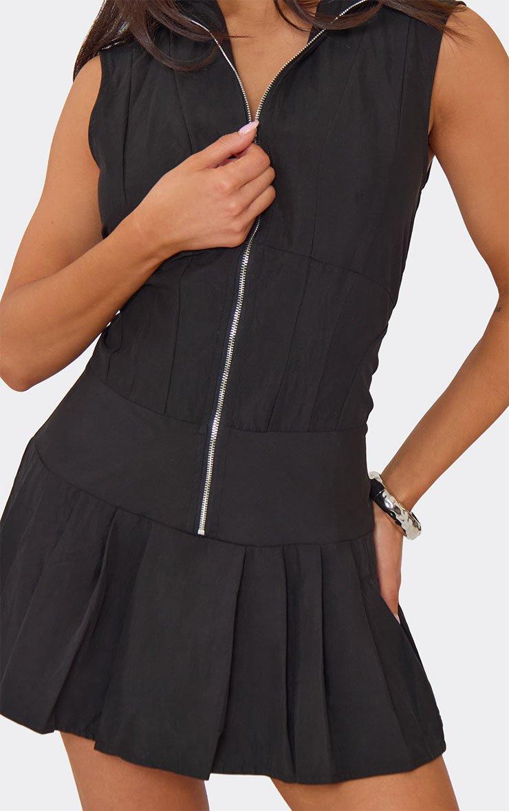 sleeveless zip fastening pleated hem playsuit in black