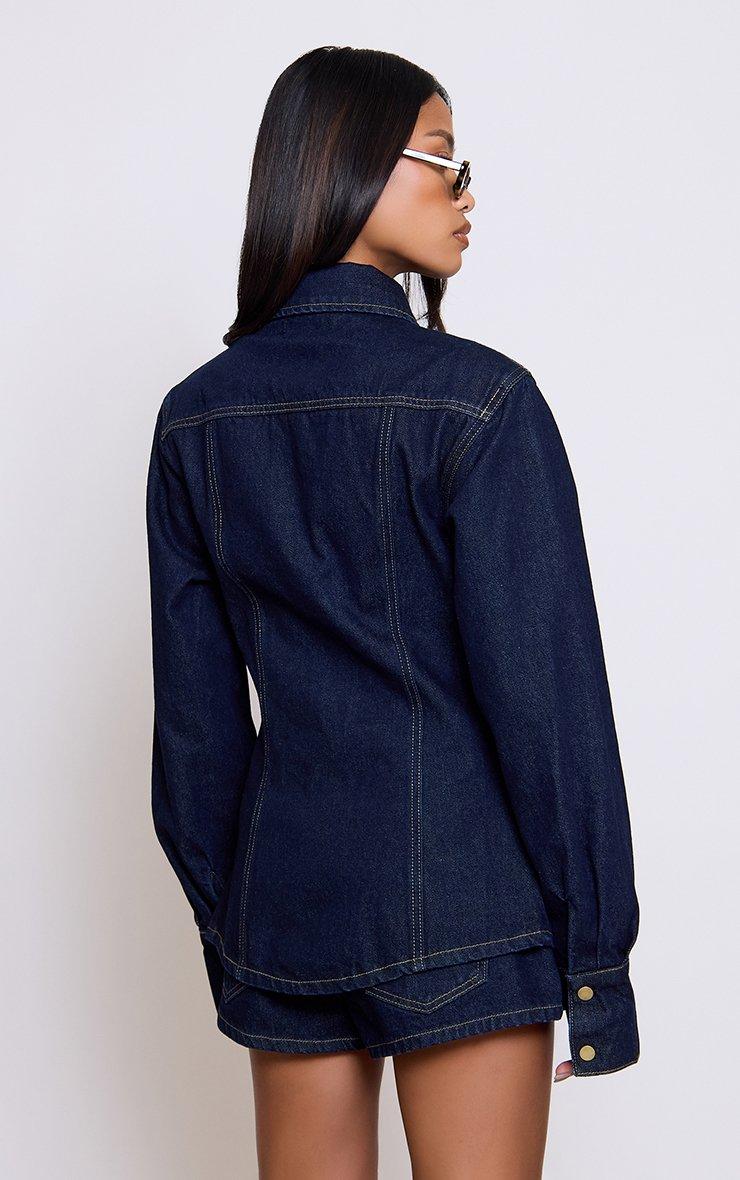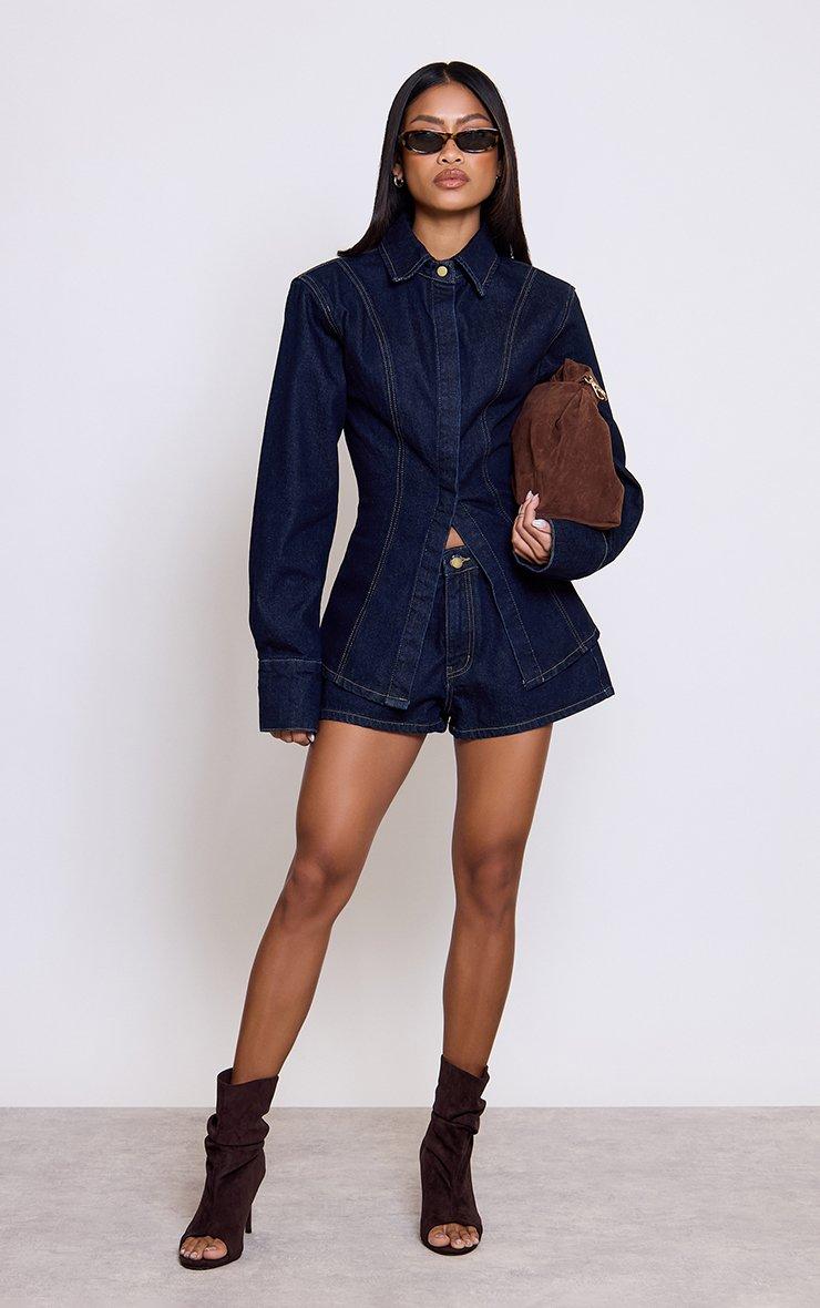 Mid Rise Curved Hem Shorts In Indigo Blue Denim