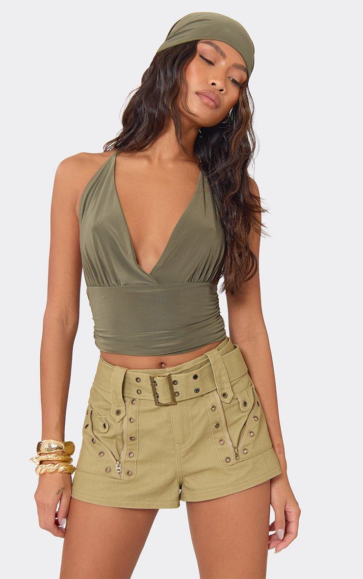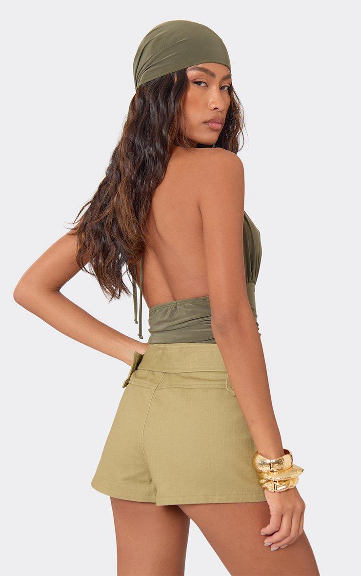 mid rise eyelet detail belted shorts in sand