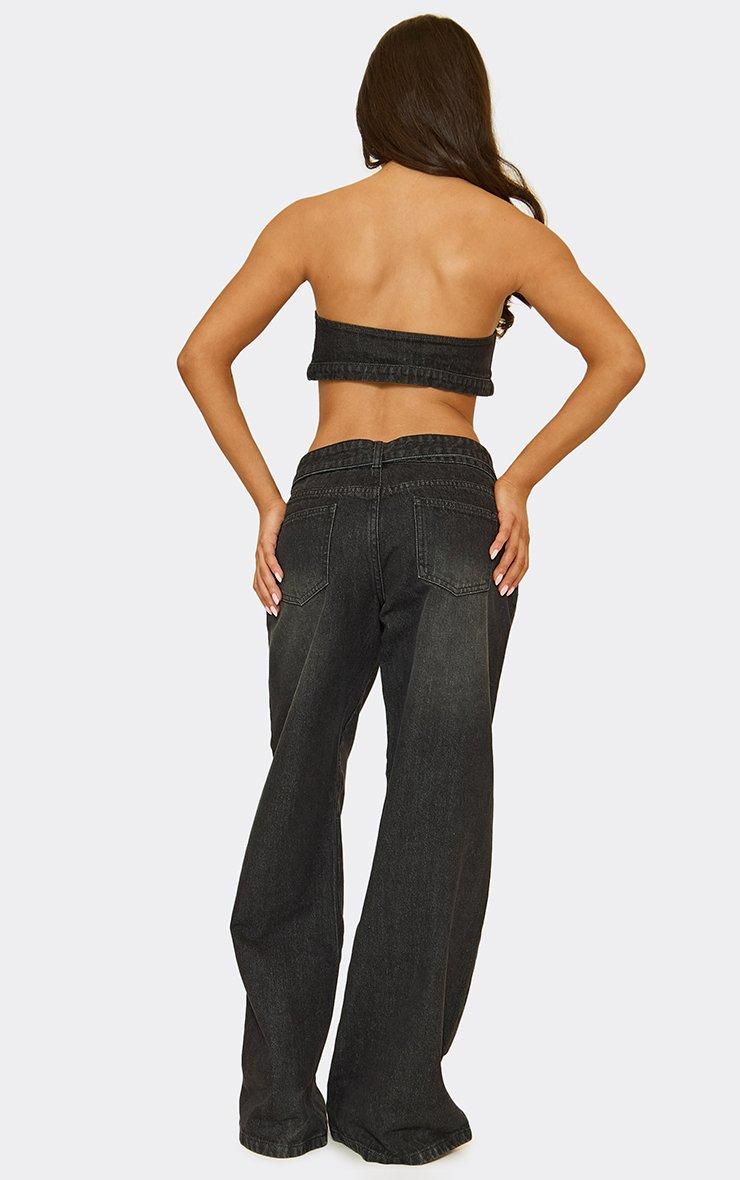 low rise zip front tie waist boyfriend jeans in black denim