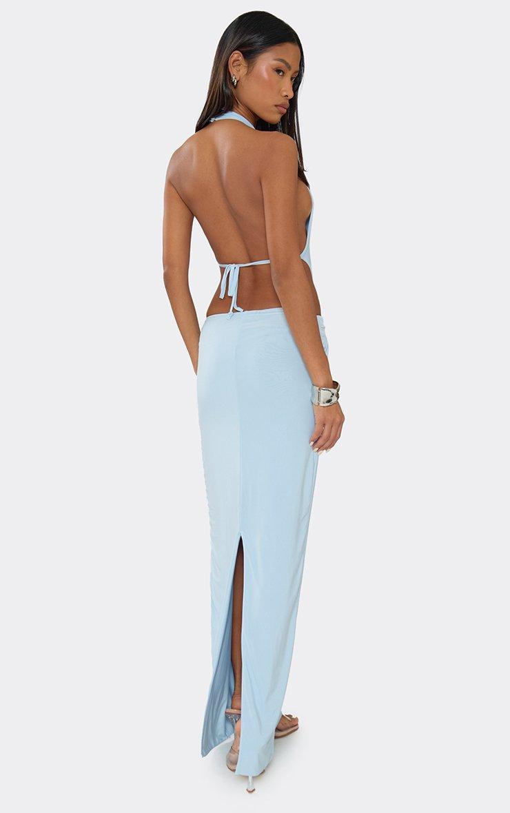 High Neck Cross Front Cut Out Maxi Dress In Baby Blue